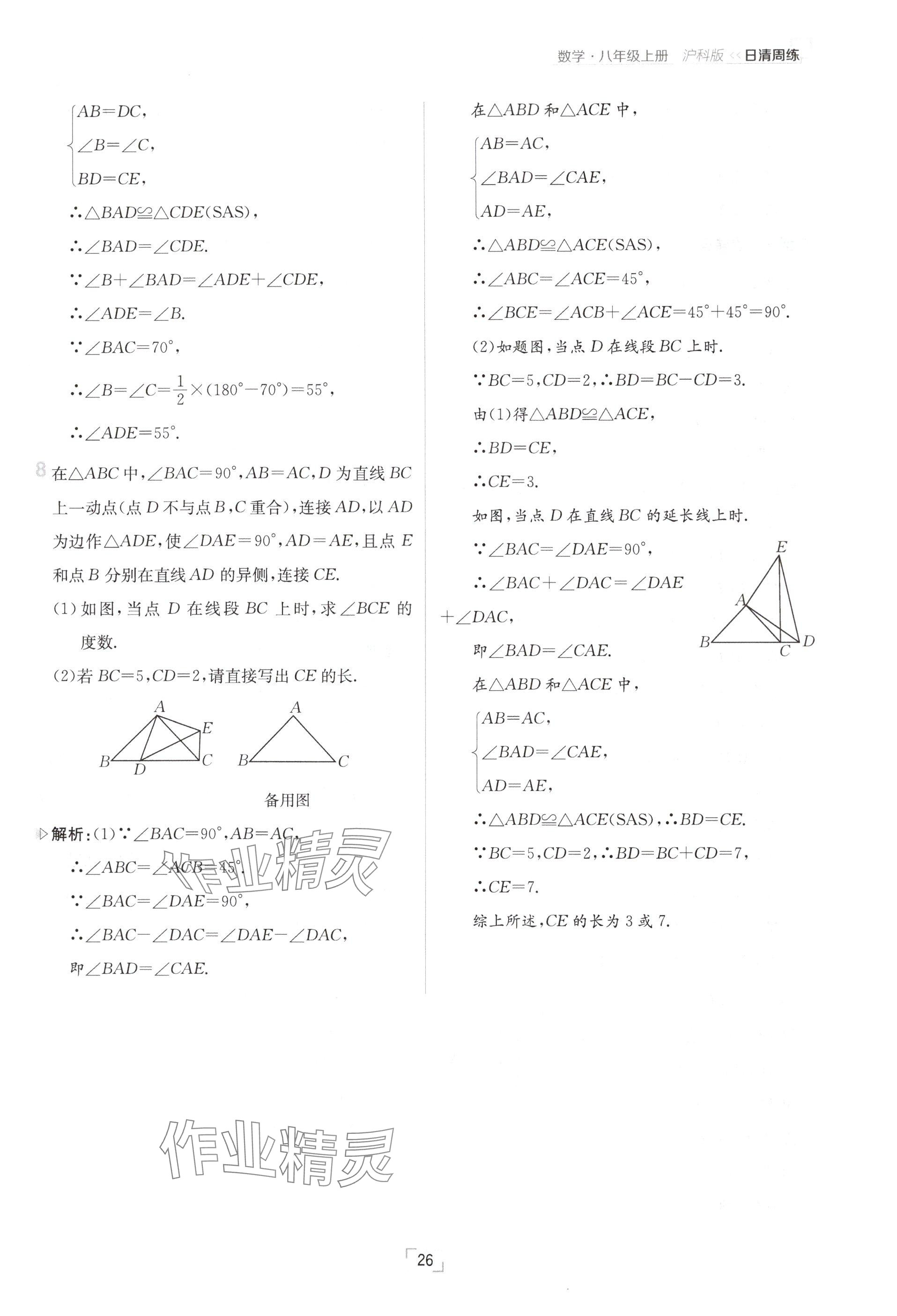 注:目前有些书本章节名称可能整理的还不是很完善,但都是按照顺序排列的,请同学们按照顺序仔细查找。练习册 2024年日清周练八年级数学上册沪科版 答案主要是用来给同学们做完题方便对答案用的,请勿直接抄袭。