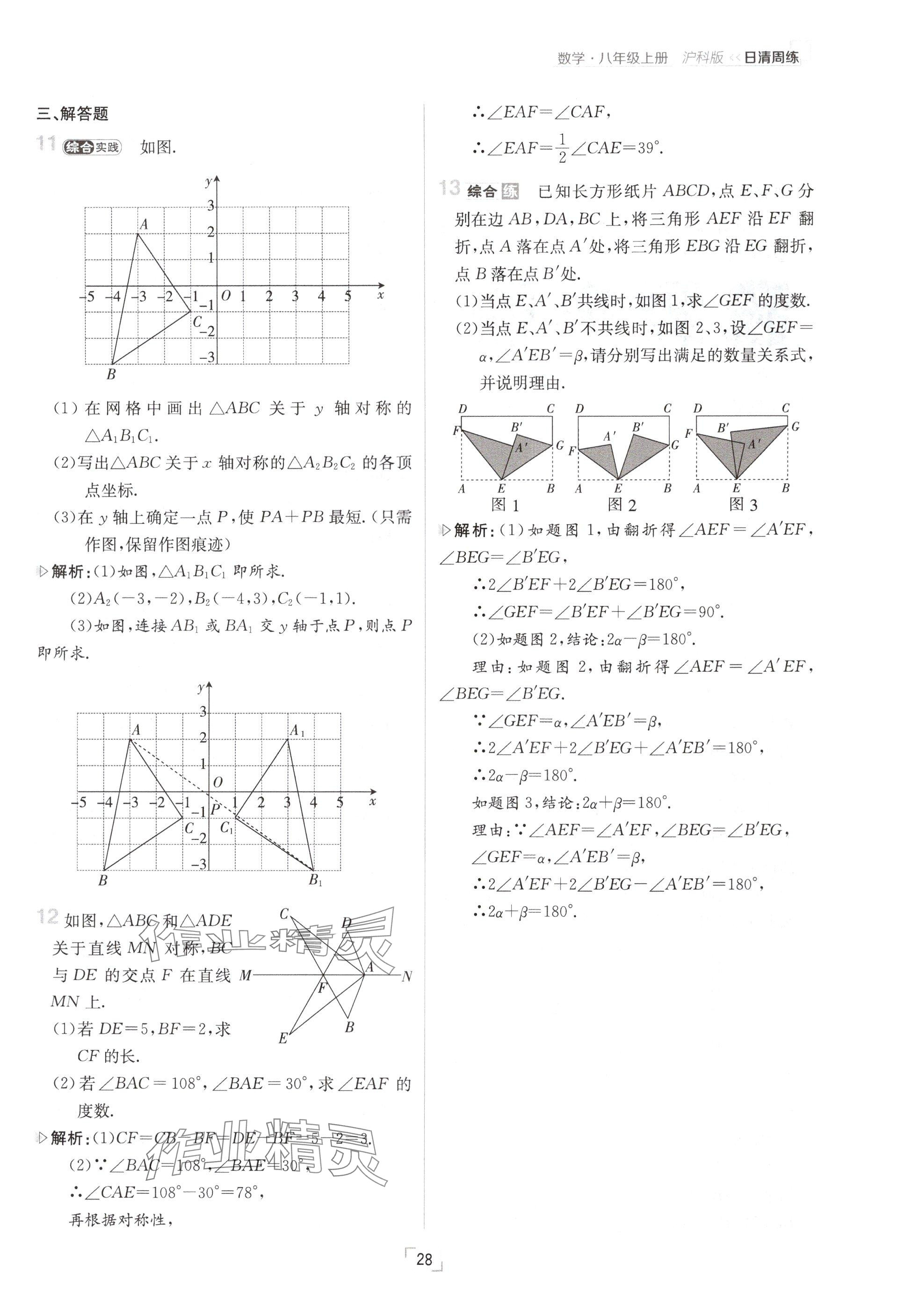 注:目前有些书本章节名称可能整理的还不是很完善,但都是按照顺序排列的,请同学们按照顺序仔细查找。练习册 2024年日清周练八年级数学上册沪科版 答案主要是用来给同学们做完题方便对答案用的,请勿直接抄袭。