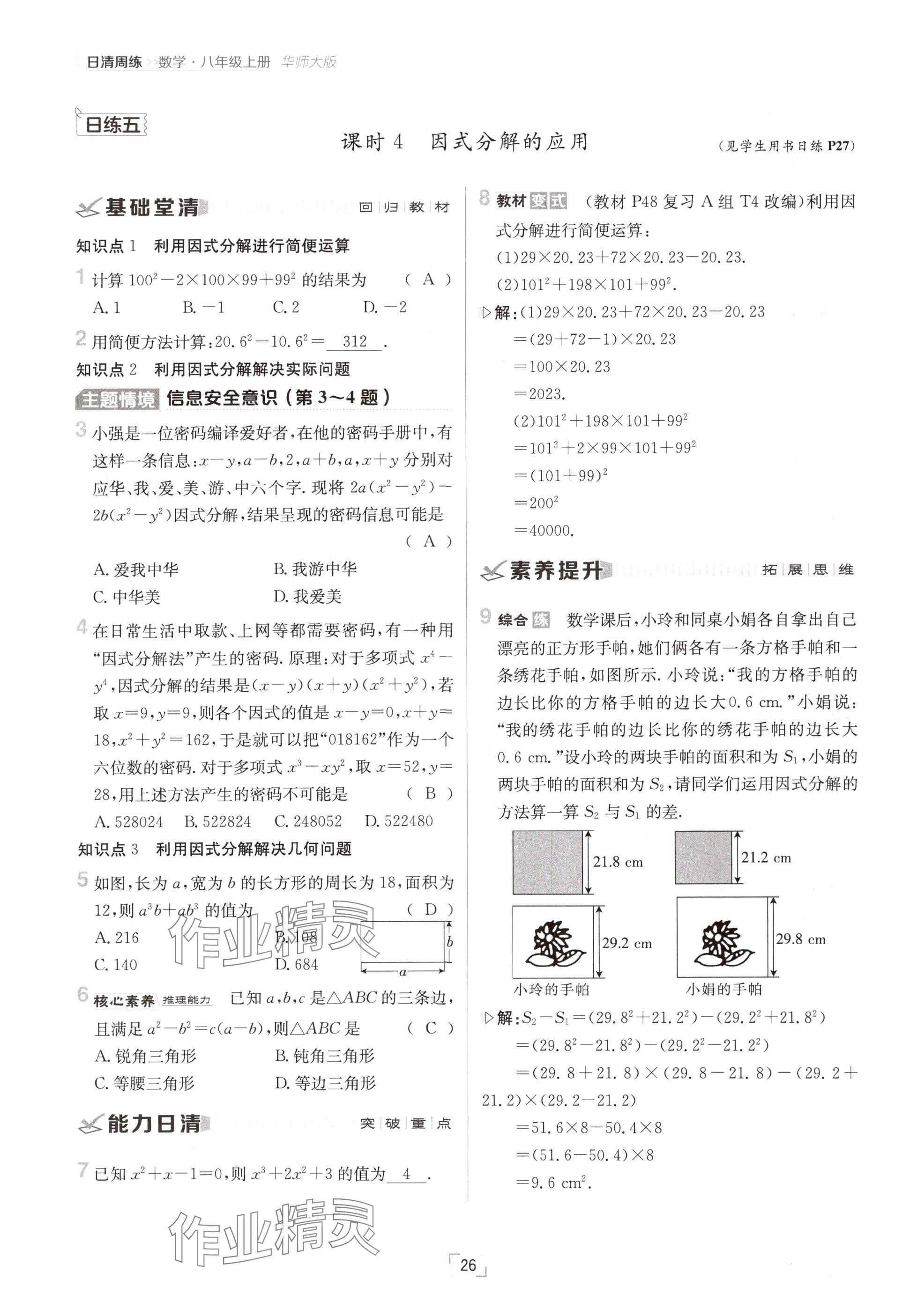 注:目前有些书本章节名称可能整理的还不是很完善,但都是按照顺序排列的,请同学们按照顺序仔细查找。练习册 2024年日清周练八年级数学上册华师大版 答案主要是用来给同学们做完题方便对答案用的,请勿直接抄袭。
