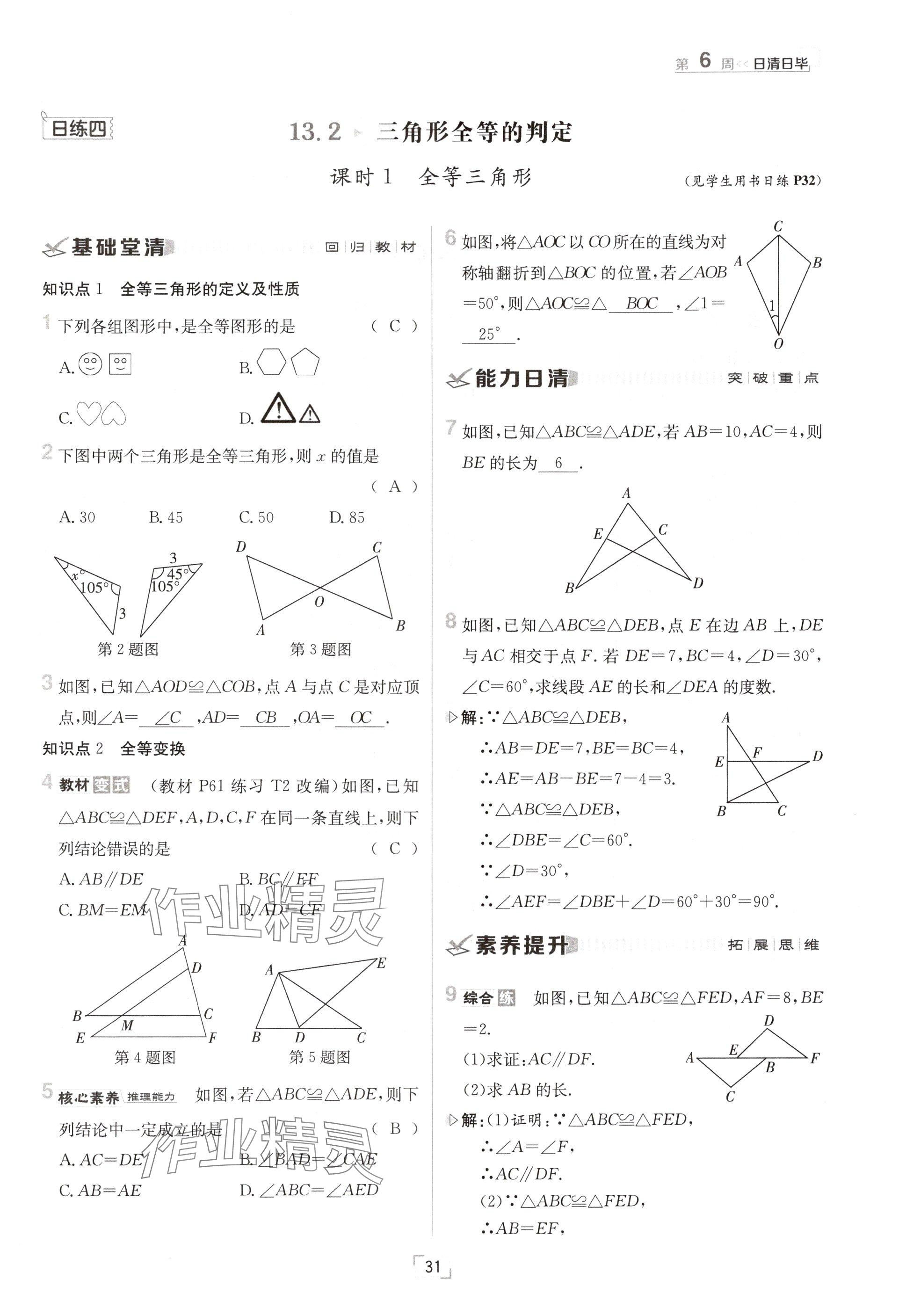 注:目前有些书本章节名称可能整理的还不是很完善,但都是按照顺序排列的,请同学们按照顺序仔细查找。练习册 2024年日清周练八年级数学上册华师大版 答案主要是用来给同学们做完题方便对答案用的,请勿直接抄袭。