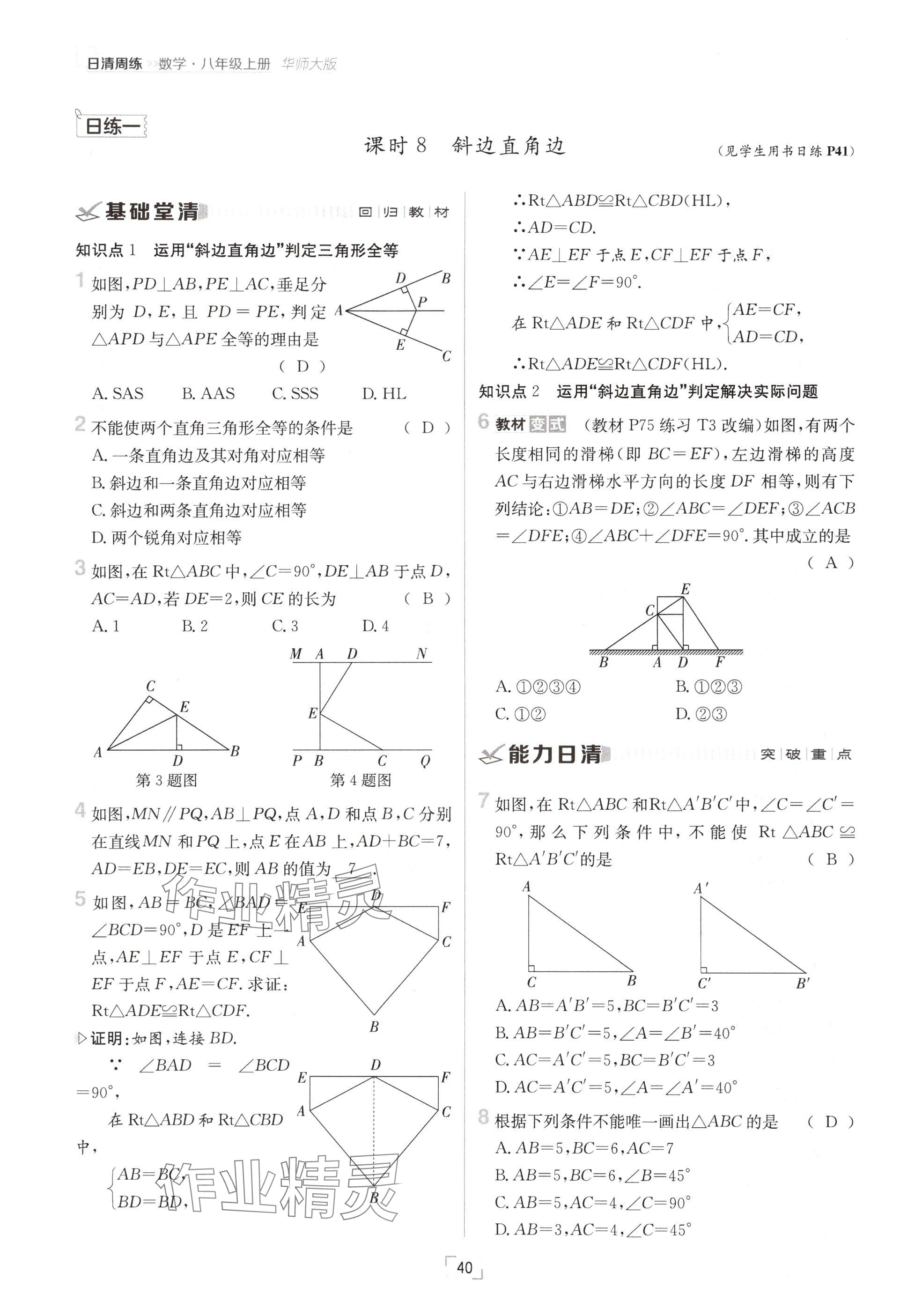 注:目前有些书本章节名称可能整理的还不是很完善,但都是按照顺序排列的,请同学们按照顺序仔细查找。练习册 2024年日清周练八年级数学上册华师大版 答案主要是用来给同学们做完题方便对答案用的,请勿直接抄袭。