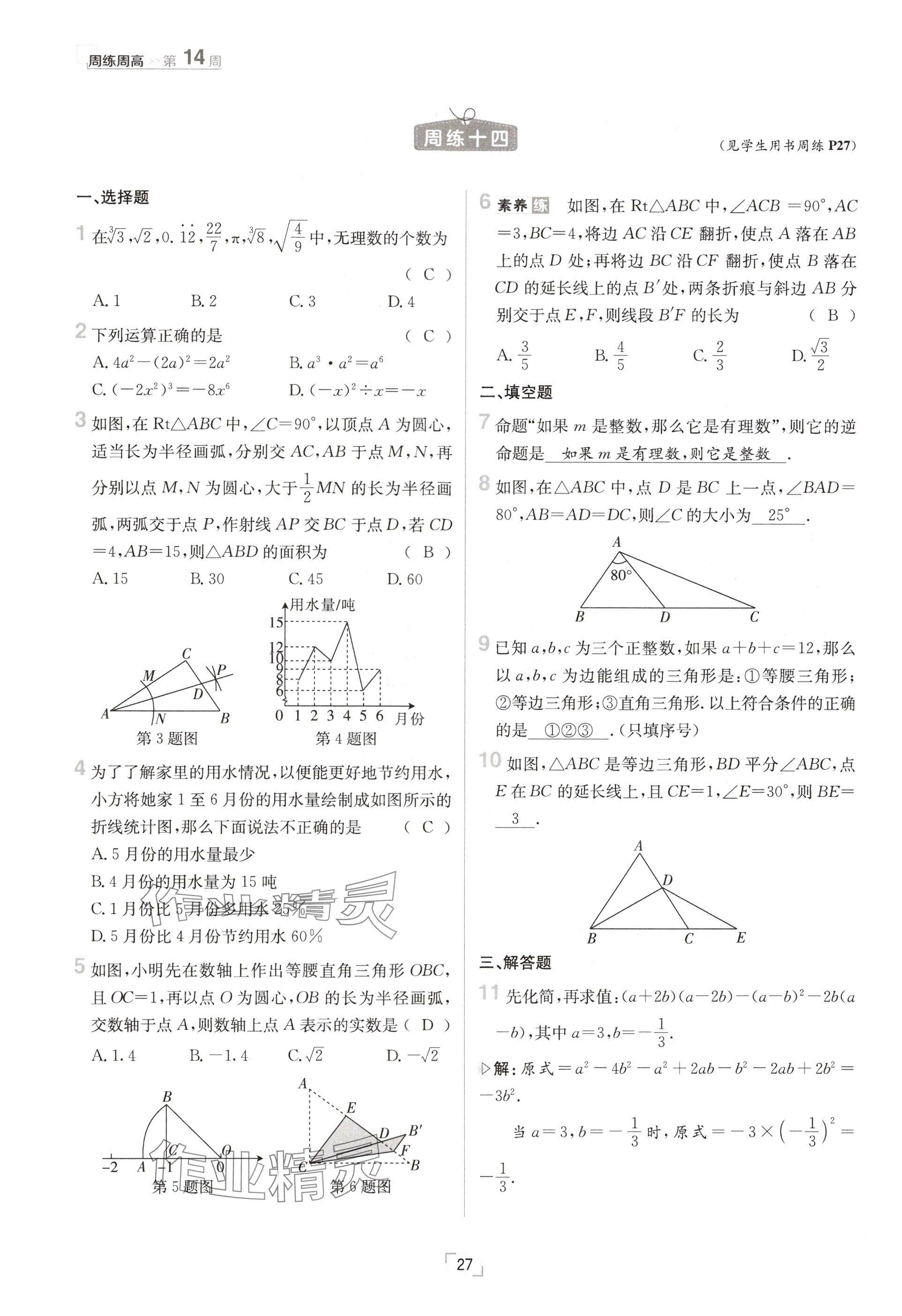 注:目前有些书本章节名称可能整理的还不是很完善,但都是按照顺序排列的,请同学们按照顺序仔细查找。练习册 2024年日清周练八年级数学上册华师大版 答案主要是用来给同学们做完题方便对答案用的,请勿直接抄袭。