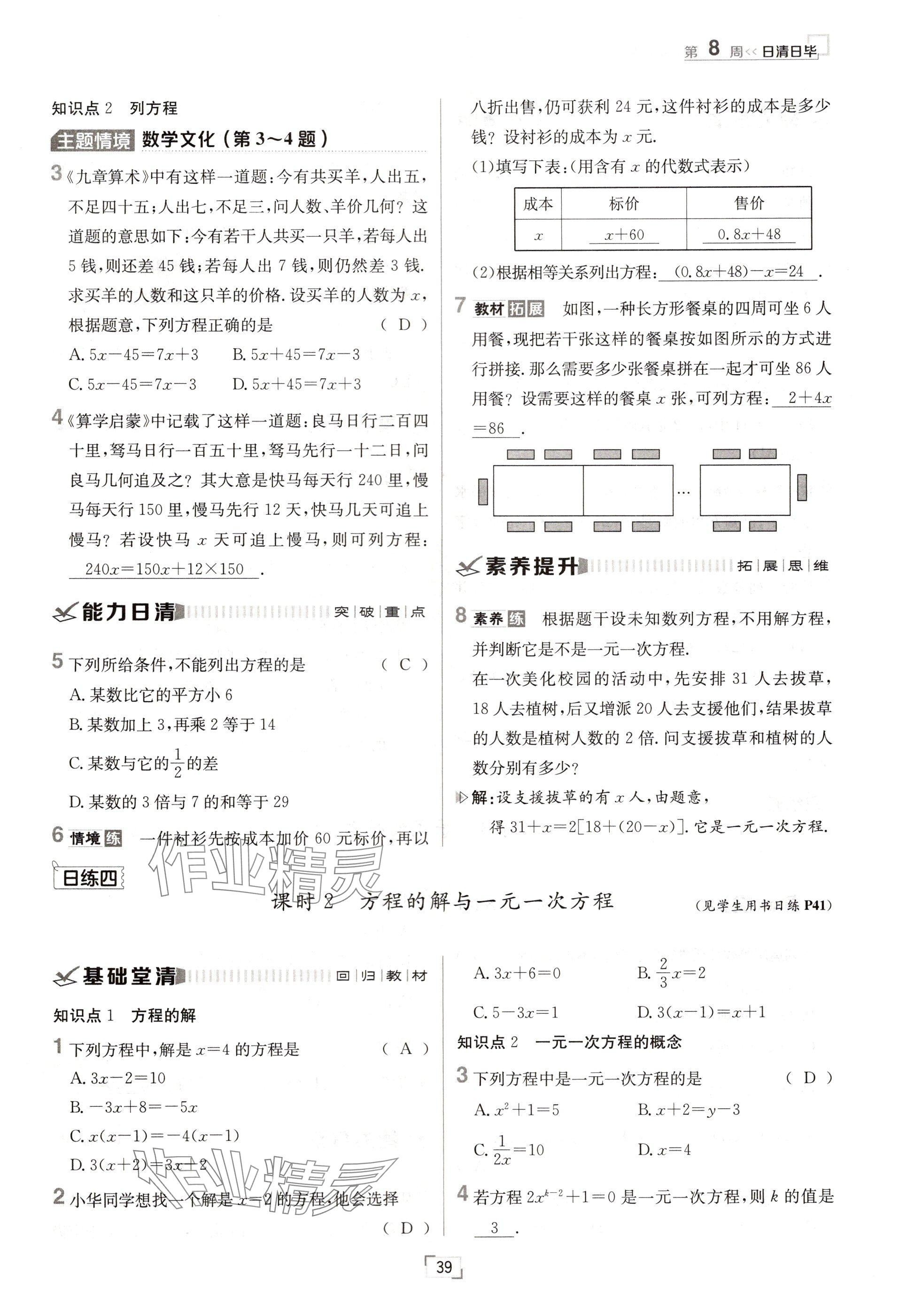 注:目前有些书本章节名称可能整理的还不是很完善,但都是按照顺序排列的,请同学们按照顺序仔细查找。练习册 2024年日清周练七年级数学上册人教版 答案主要是用来给同学们做完题方便对答案用的,请勿直接抄袭。