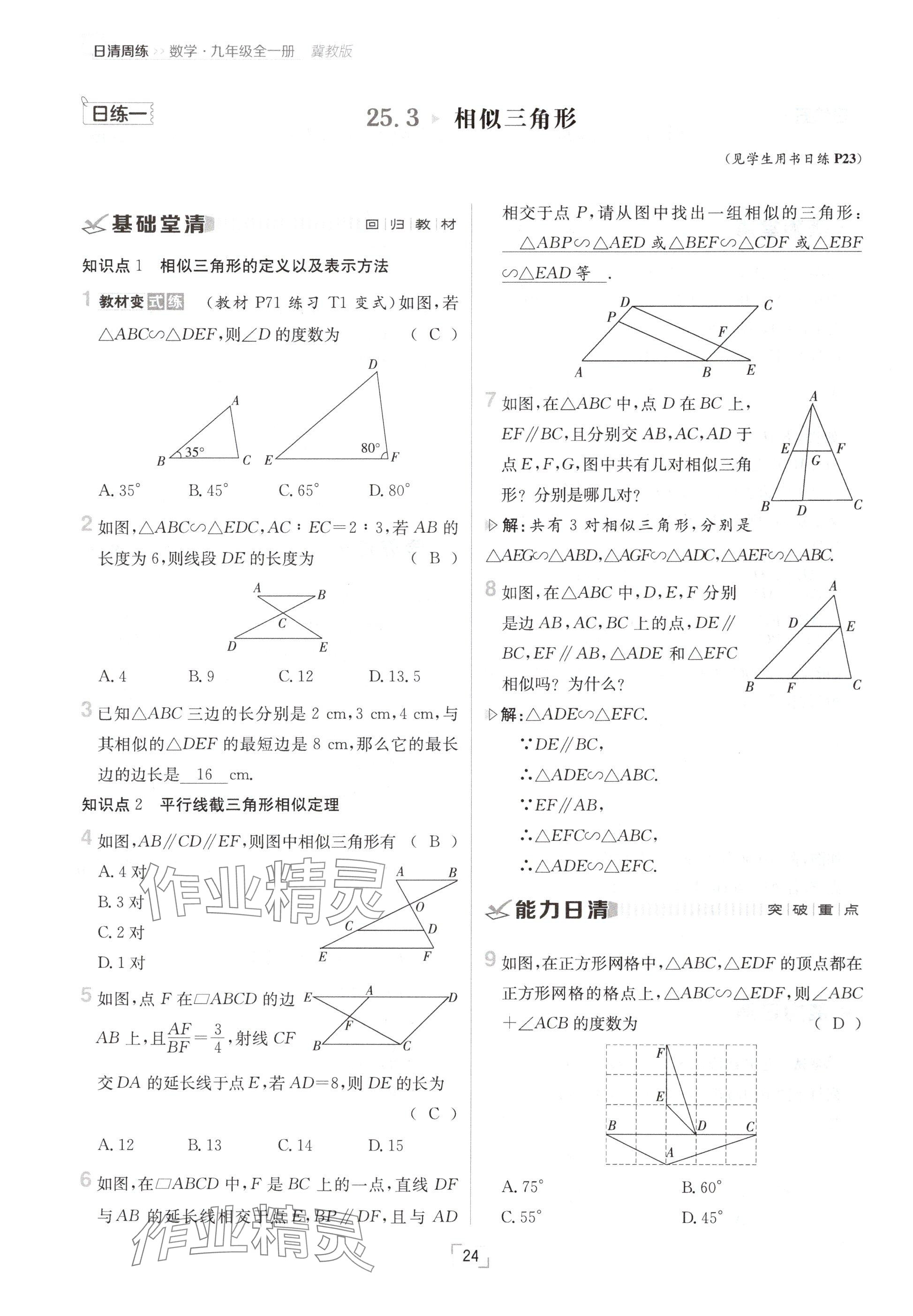 注:目前有些书本章节名称可能整理的还不是很完善,但都是按照顺序排列的,请同学们按照顺序仔细查找。练习册 2024年日清周练九年级数学全一册冀教版 答案主要是用来给同学们做完题方便对答案用的,请勿直接抄袭。