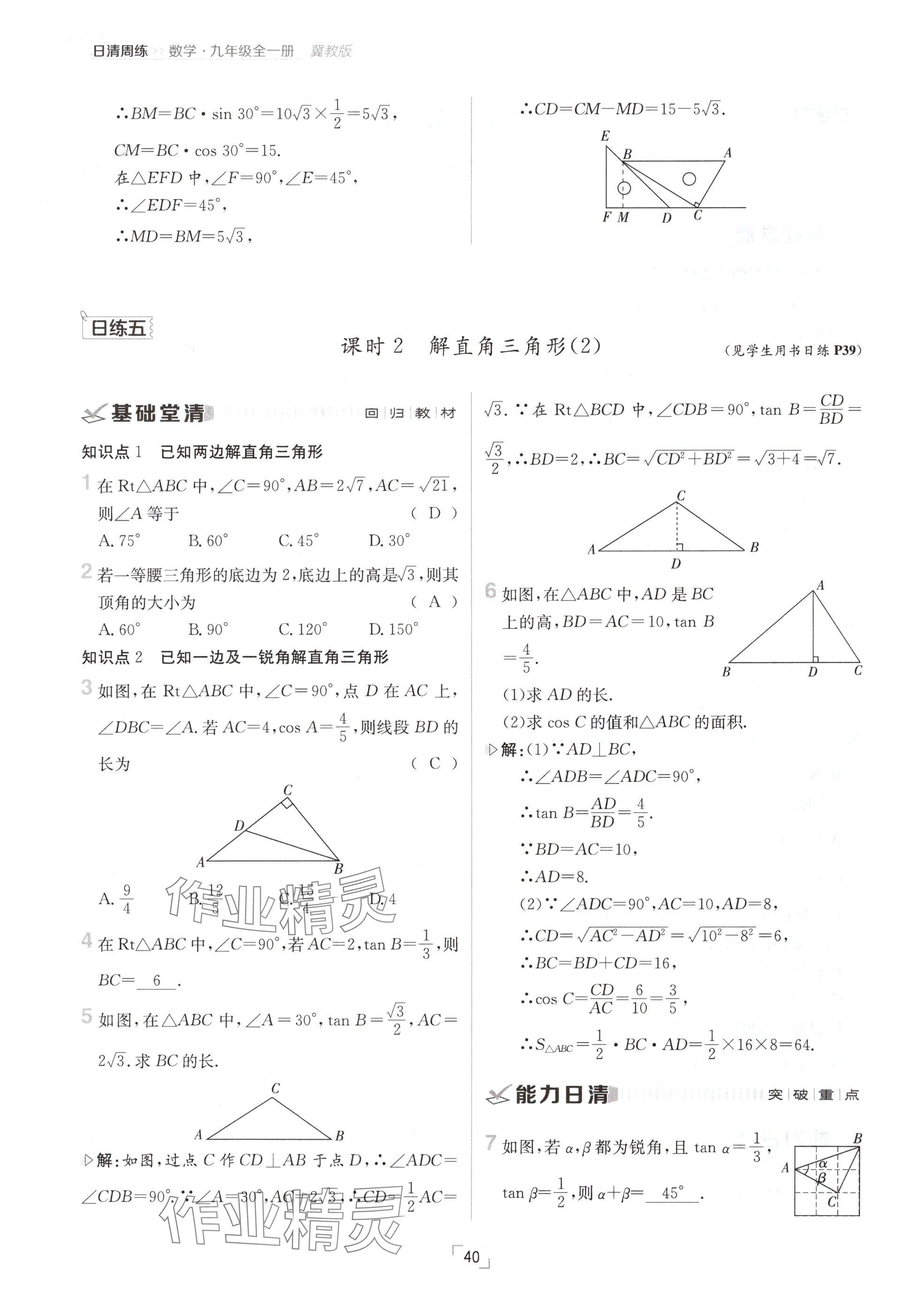注:目前有些书本章节名称可能整理的还不是很完善,但都是按照顺序排列的,请同学们按照顺序仔细查找。练习册 2024年日清周练九年级数学全一册冀教版 答案主要是用来给同学们做完题方便对答案用的,请勿直接抄袭。