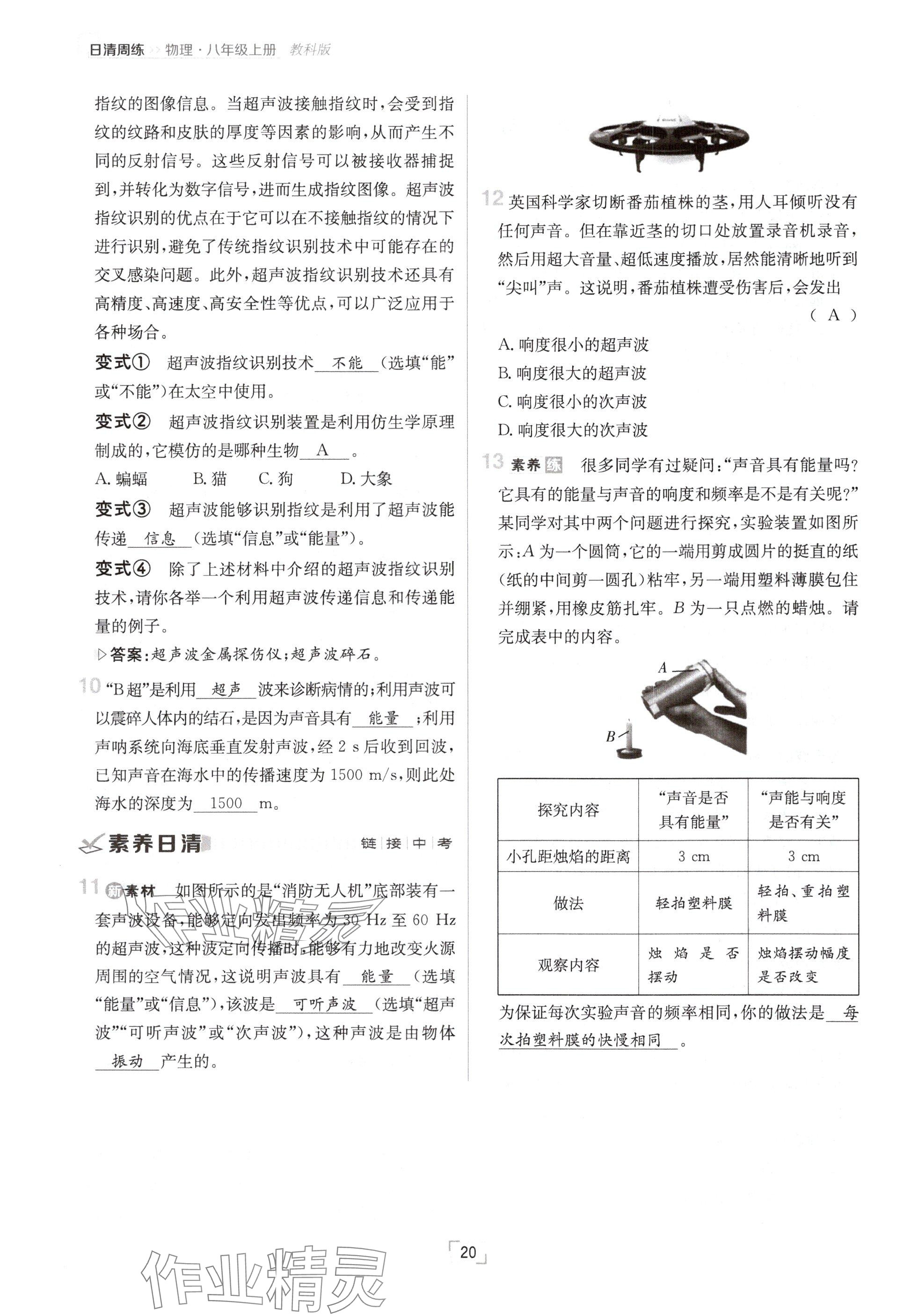 注:目前有些书本章节名称可能整理的还不是很完善,但都是按照顺序排列的,请同学们按照顺序仔细查找。练习册 2024年日清周练八年级物理上册教科版 答案主要是用来给同学们做完题方便对答案用的,请勿直接抄袭。