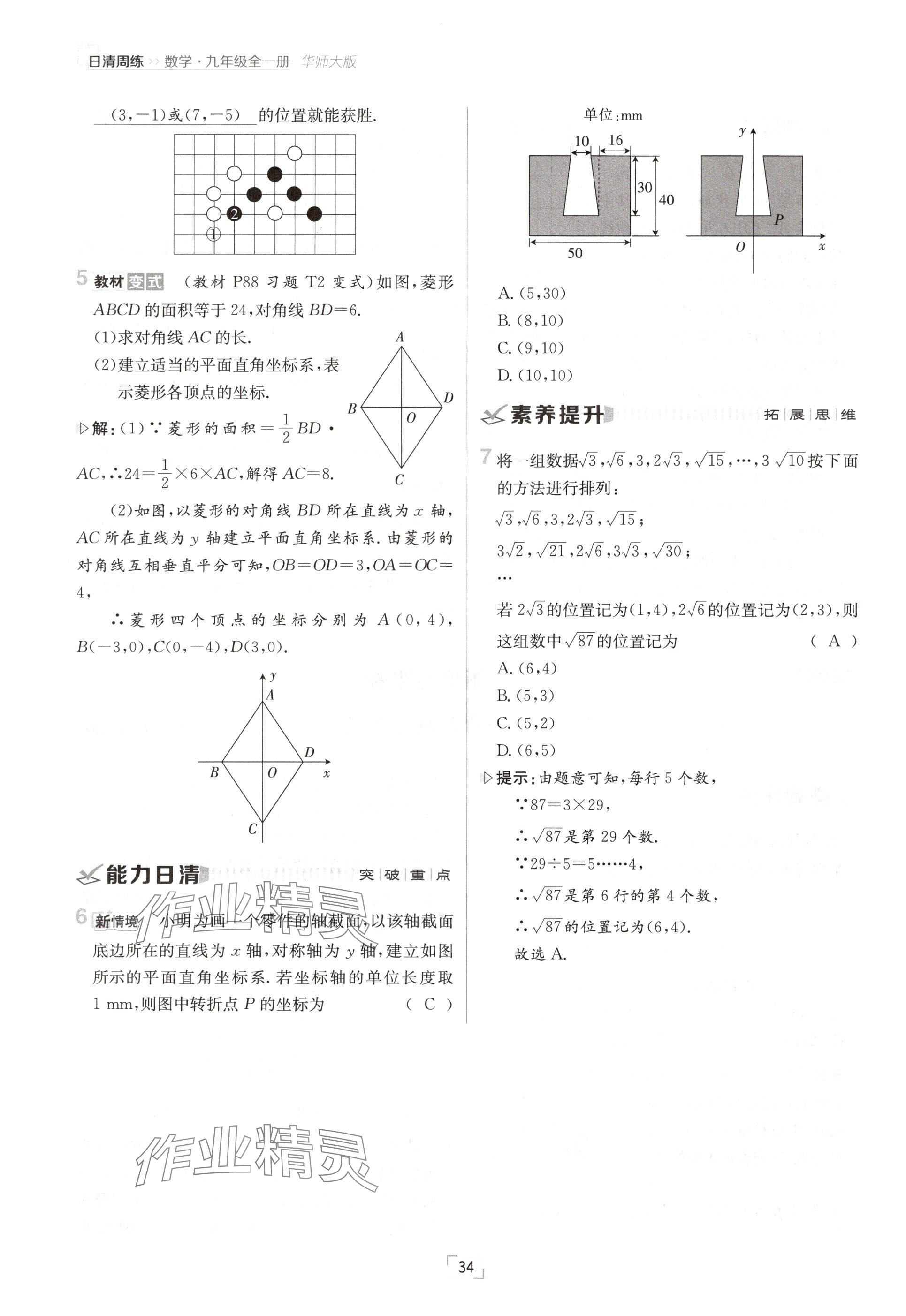 注:目前有些书本章节名称可能整理的还不是很完善,但都是按照顺序排列的,请同学们按照顺序仔细查找。练习册 2024年日清周练九年级数学全一册华师大版 答案主要是用来给同学们做完题方便对答案用的,请勿直接抄袭。