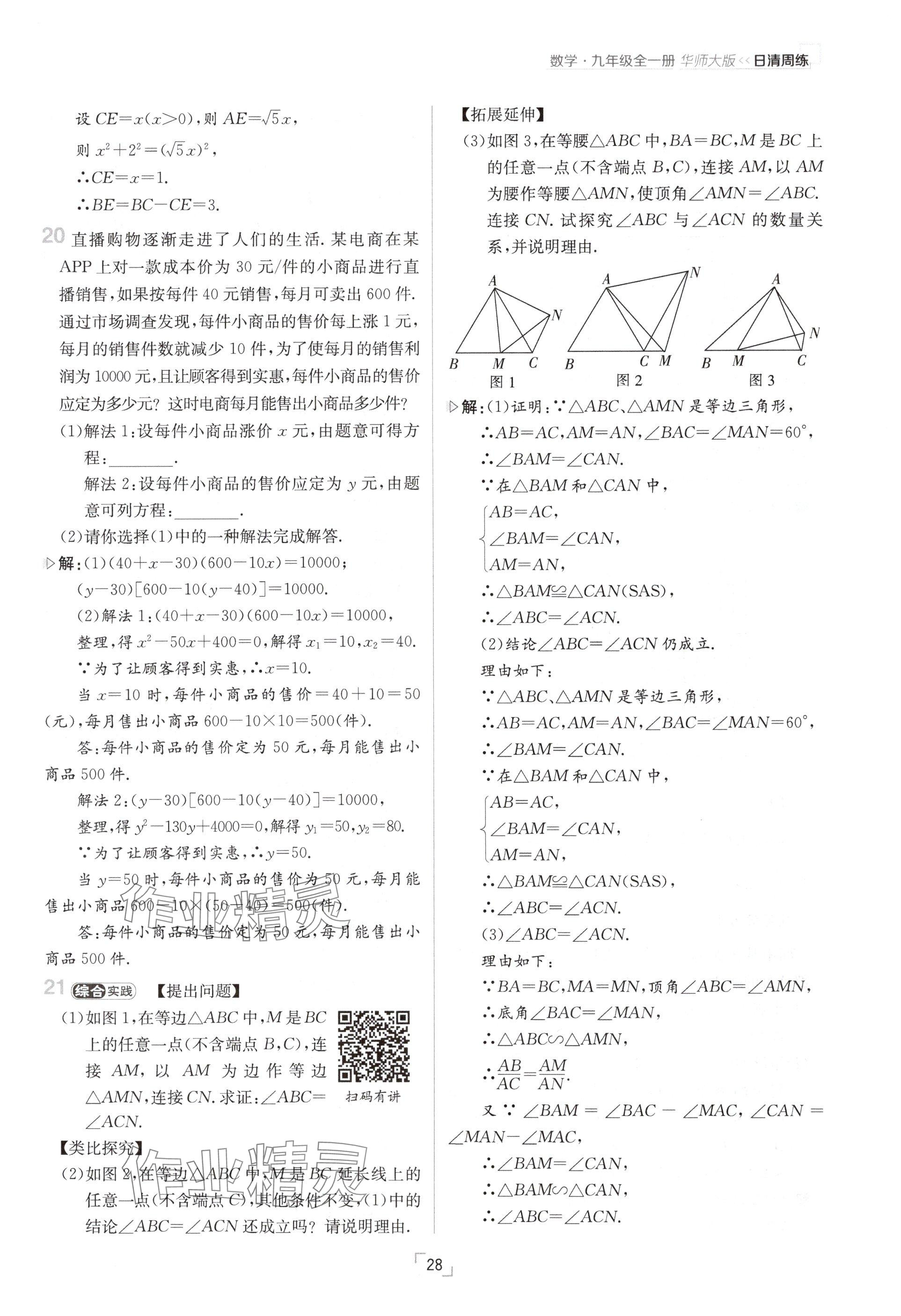 注:目前有些书本章节名称可能整理的还不是很完善,但都是按照顺序排列的,请同学们按照顺序仔细查找。练习册 2024年日清周练九年级数学全一册华师大版 答案主要是用来给同学们做完题方便对答案用的,请勿直接抄袭。