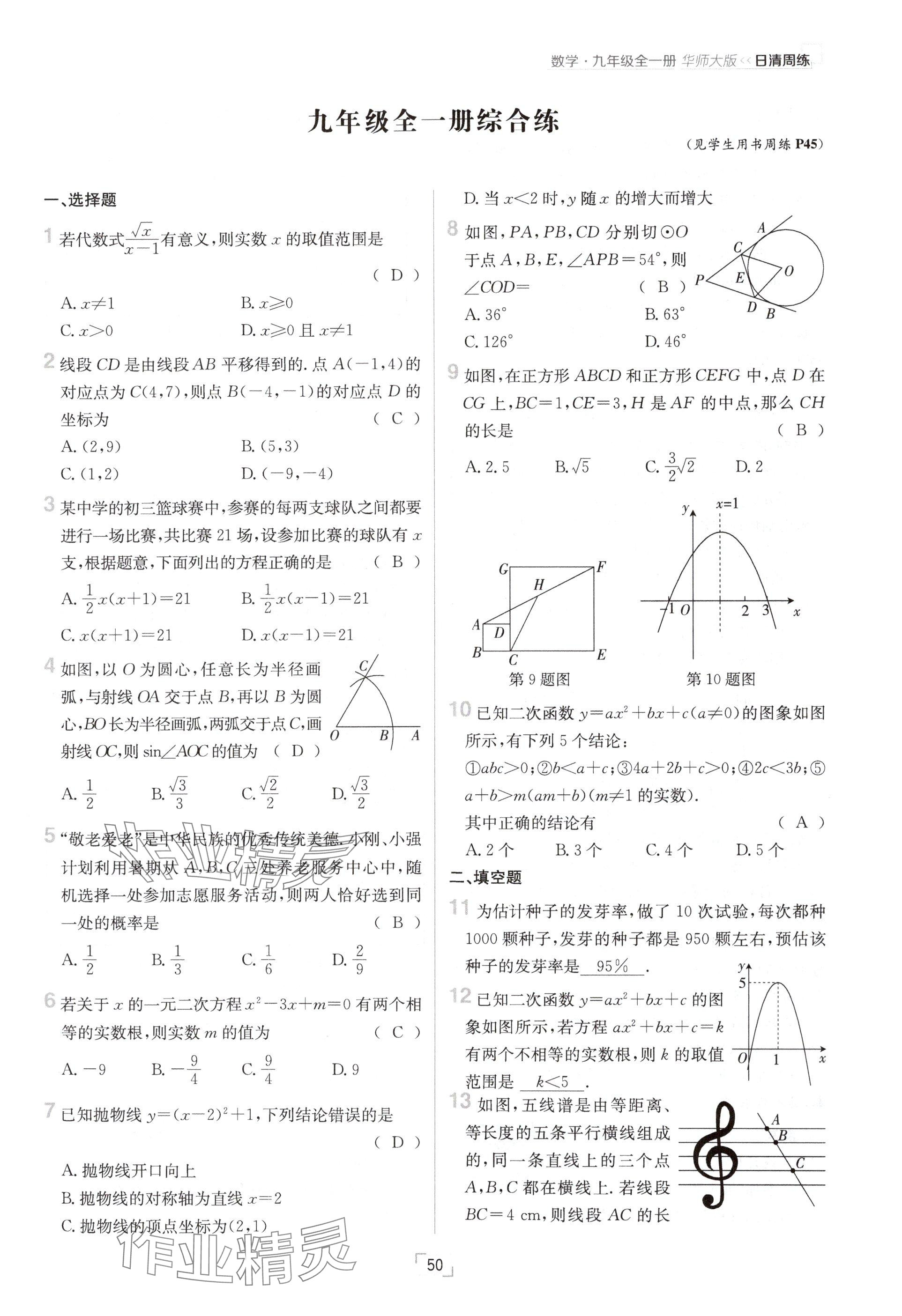 注:目前有些书本章节名称可能整理的还不是很完善,但都是按照顺序排列的,请同学们按照顺序仔细查找。练习册 2024年日清周练九年级数学全一册华师大版 答案主要是用来给同学们做完题方便对答案用的,请勿直接抄袭。