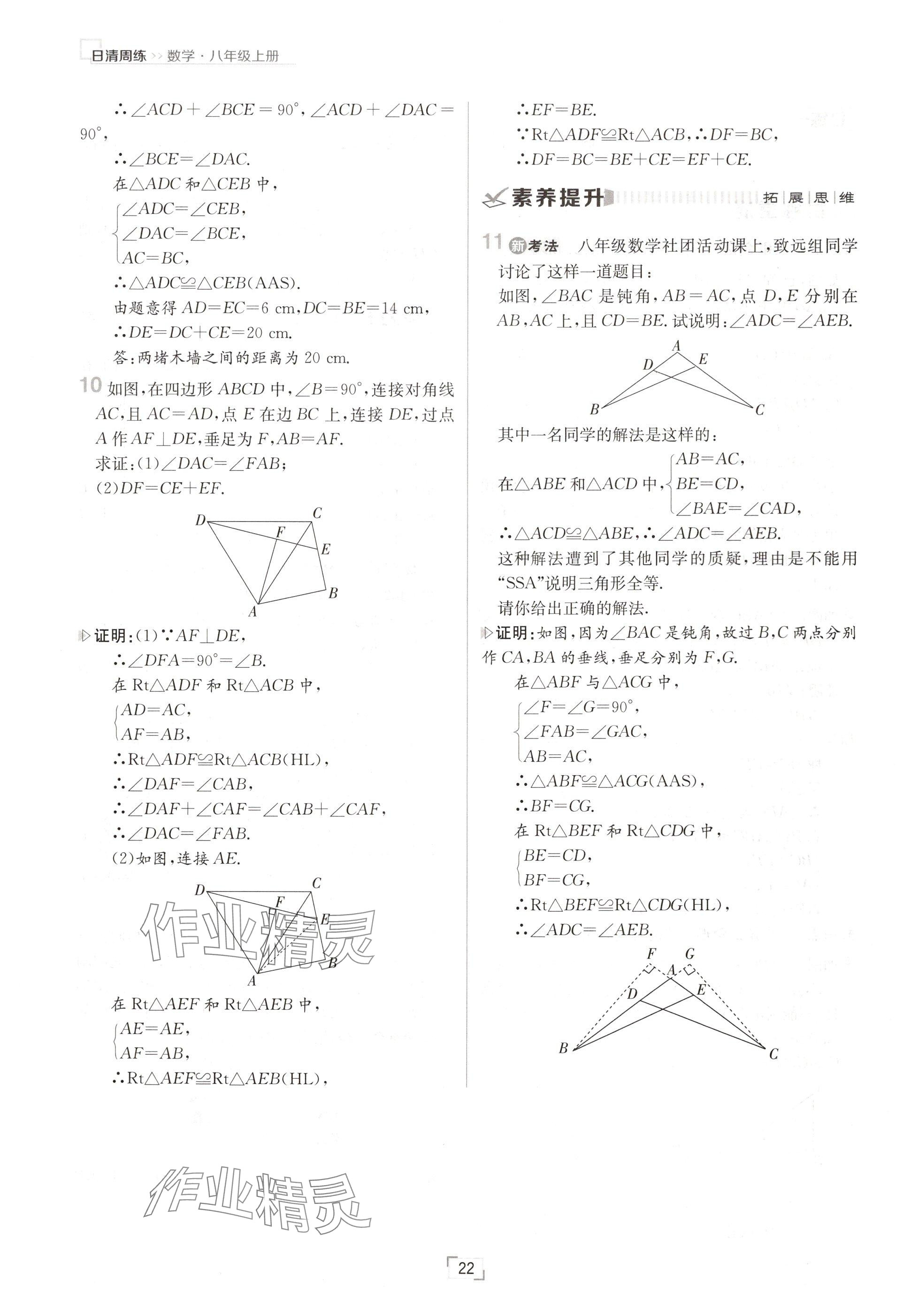 注:目前有些书本章节名称可能整理的还不是很完善,但都是按照顺序排列的,请同学们按照顺序仔细查找。练习册 2024年日清周练八年级数学上册人教版 答案主要是用来给同学们做完题方便对答案用的,请勿直接抄袭。