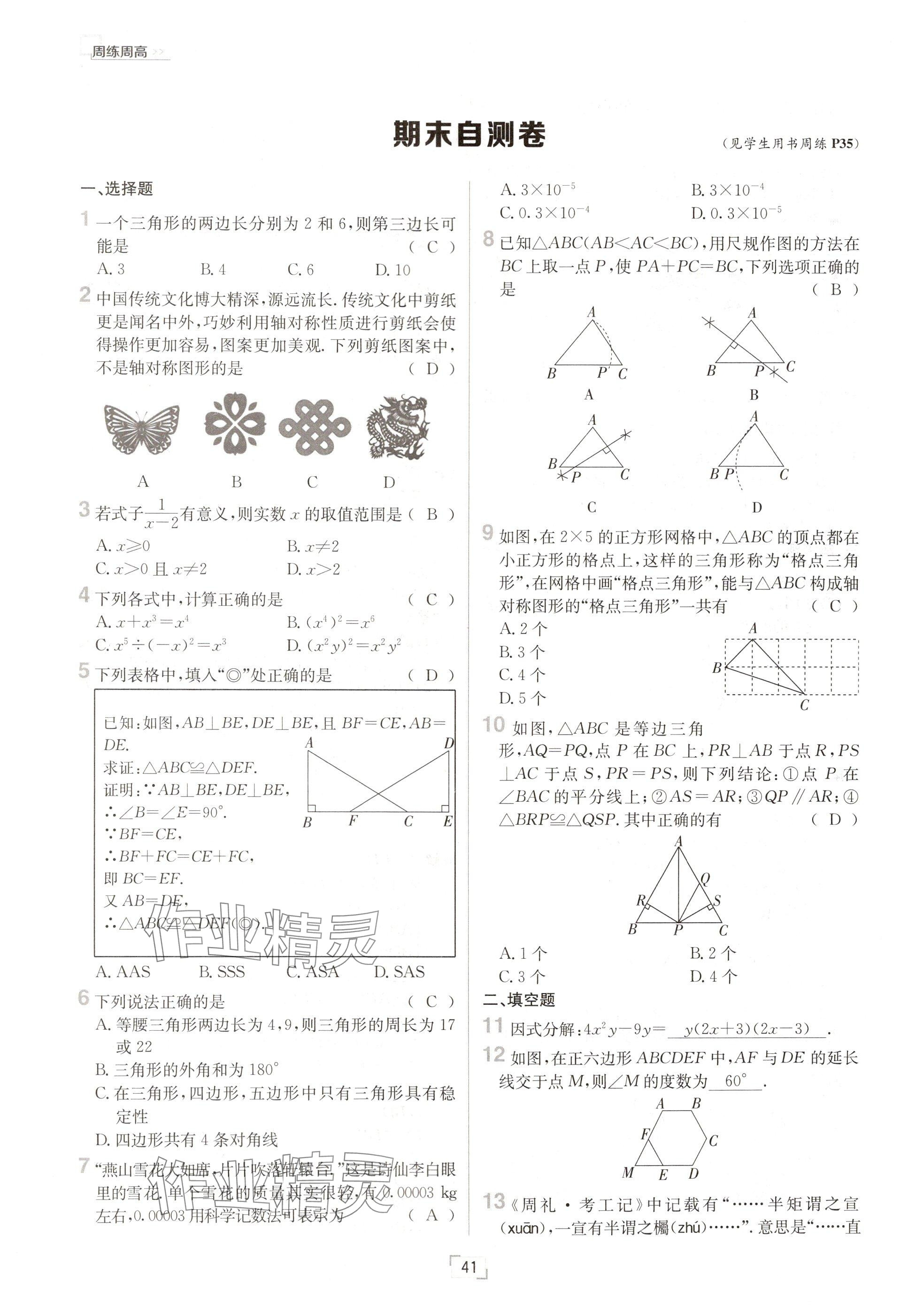 注:目前有些书本章节名称可能整理的还不是很完善,但都是按照顺序排列的,请同学们按照顺序仔细查找。练习册 2024年日清周练八年级数学上册人教版 答案主要是用来给同学们做完题方便对答案用的,请勿直接抄袭。