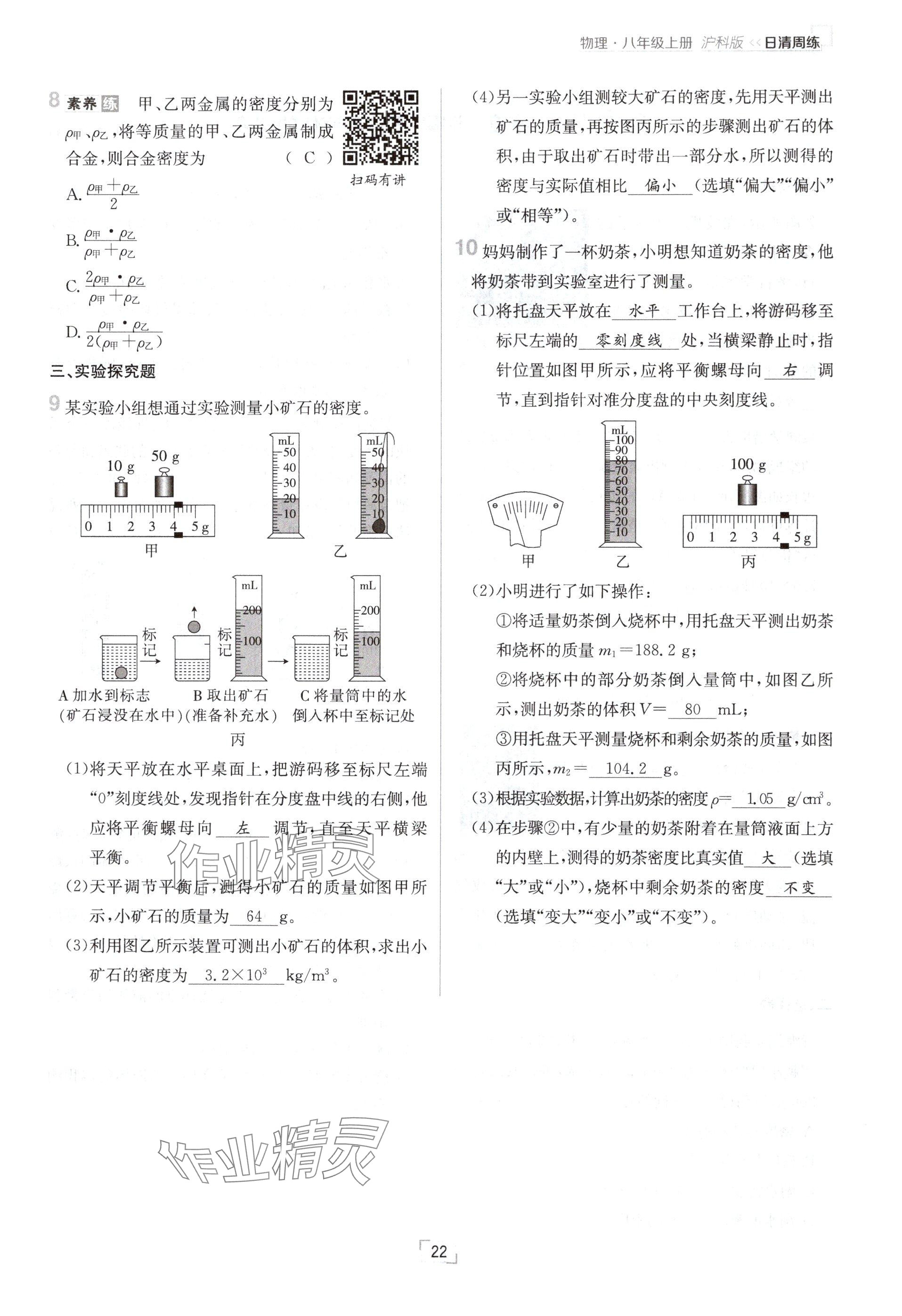 注:目前有些书本章节名称可能整理的还不是很完善,但都是按照顺序排列的,请同学们按照顺序仔细查找。练习册 2024年日清周练八年级物理上册沪科版 答案主要是用来给同学们做完题方便对答案用的,请勿直接抄袭。