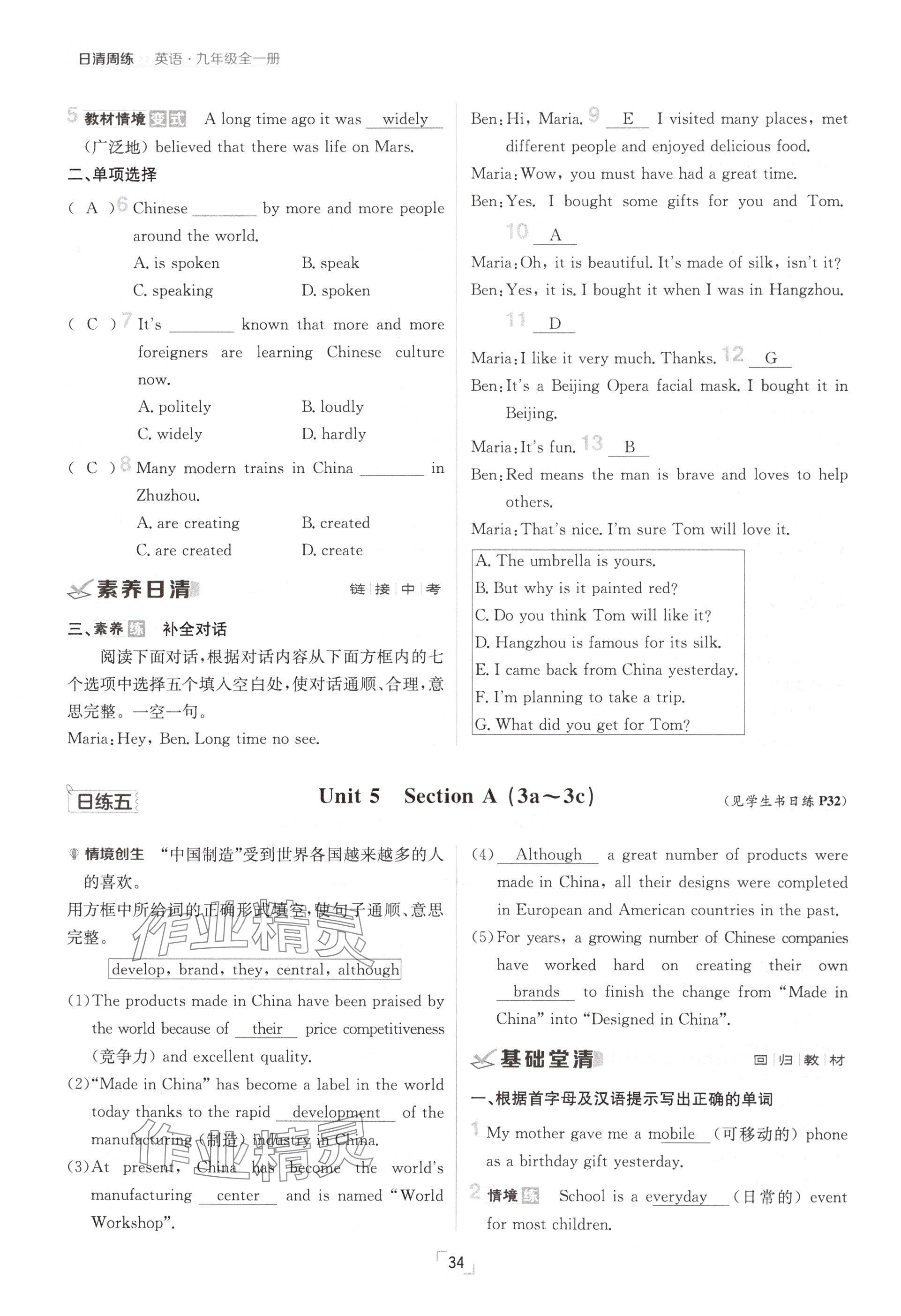 注:目前有些书本章节名称可能整理的还不是很完善,但都是按照顺序排列的,请同学们按照顺序仔细查找。练习册 2024年日清周练九年级英语全一册人教版 答案主要是用来给同学们做完题方便对答案用的,请勿直接抄袭。