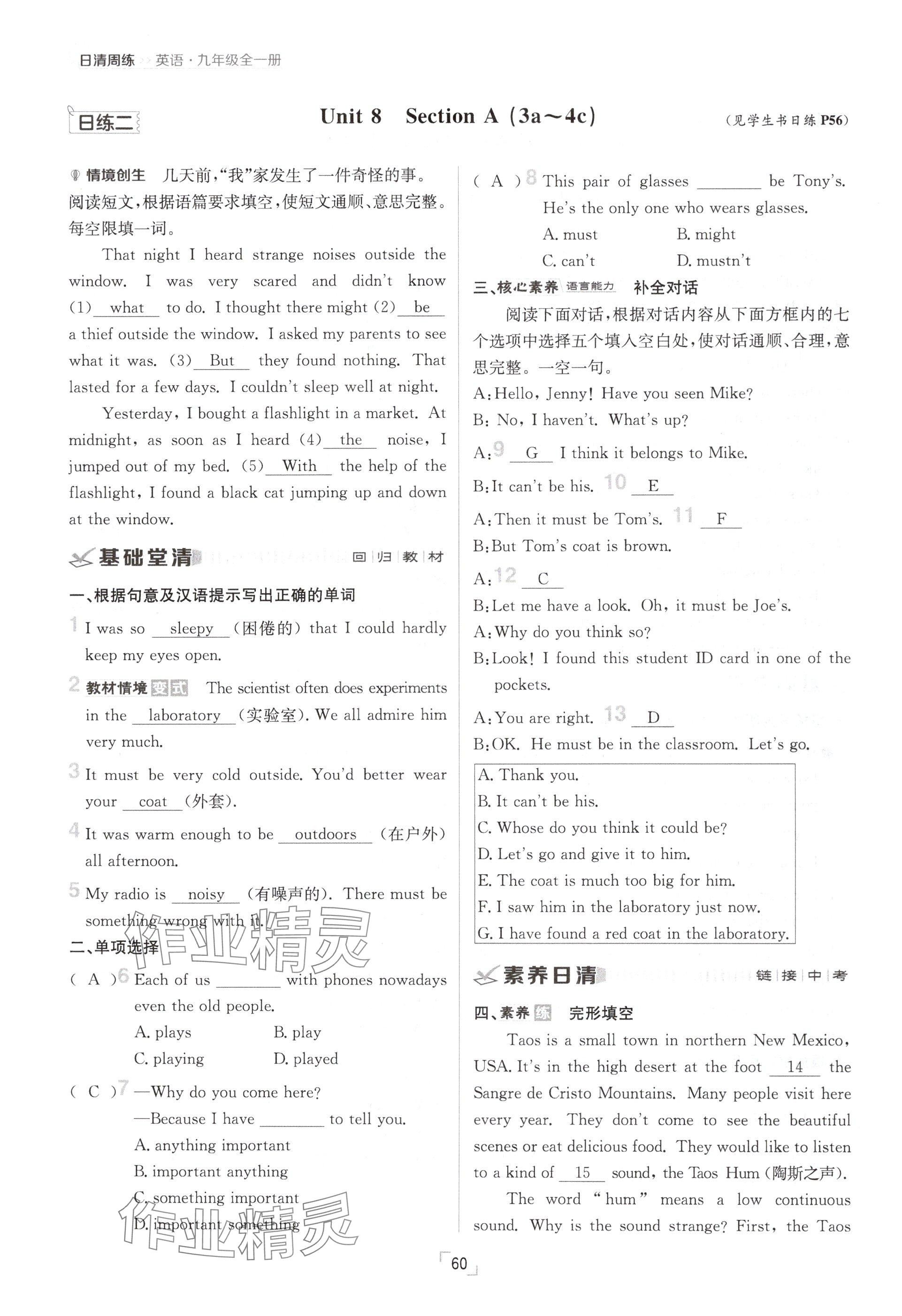 注:目前有些书本章节名称可能整理的还不是很完善,但都是按照顺序排列的,请同学们按照顺序仔细查找。练习册 2024年日清周练九年级英语全一册人教版 答案主要是用来给同学们做完题方便对答案用的,请勿直接抄袭。