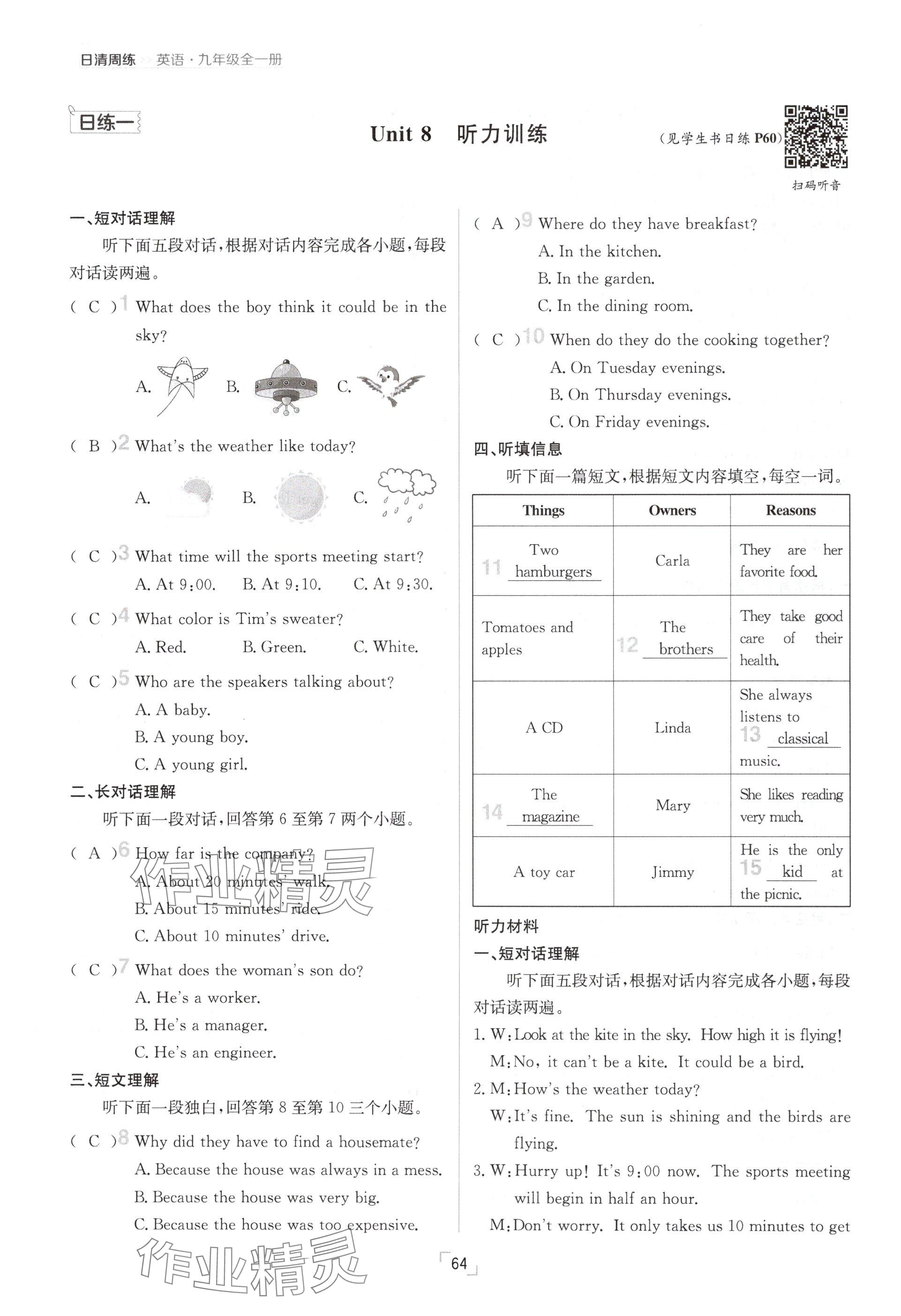 注:目前有些书本章节名称可能整理的还不是很完善,但都是按照顺序排列的,请同学们按照顺序仔细查找。练习册 2024年日清周练九年级英语全一册人教版 答案主要是用来给同学们做完题方便对答案用的,请勿直接抄袭。