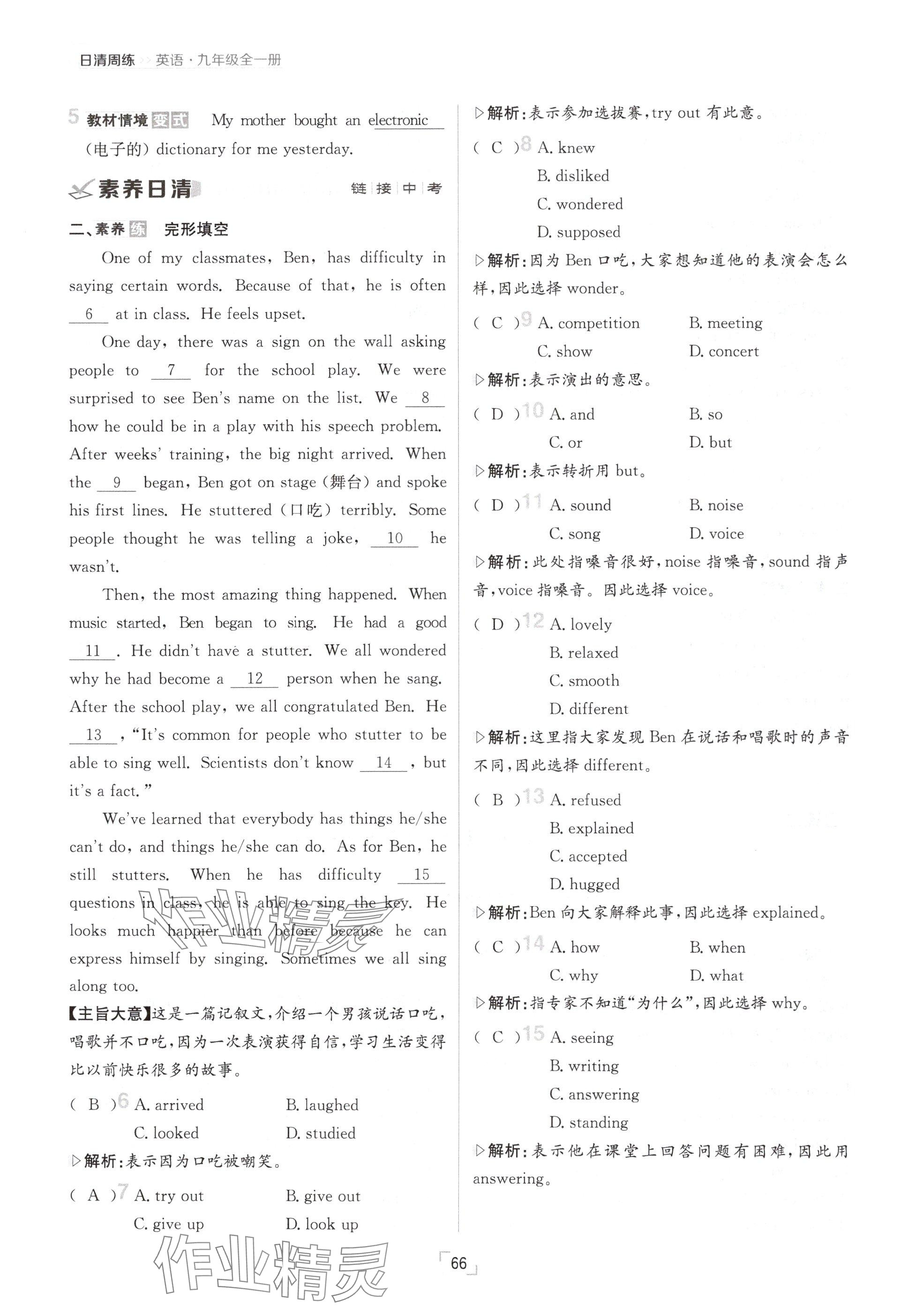 注:目前有些书本章节名称可能整理的还不是很完善,但都是按照顺序排列的,请同学们按照顺序仔细查找。练习册 2024年日清周练九年级英语全一册人教版 答案主要是用来给同学们做完题方便对答案用的,请勿直接抄袭。