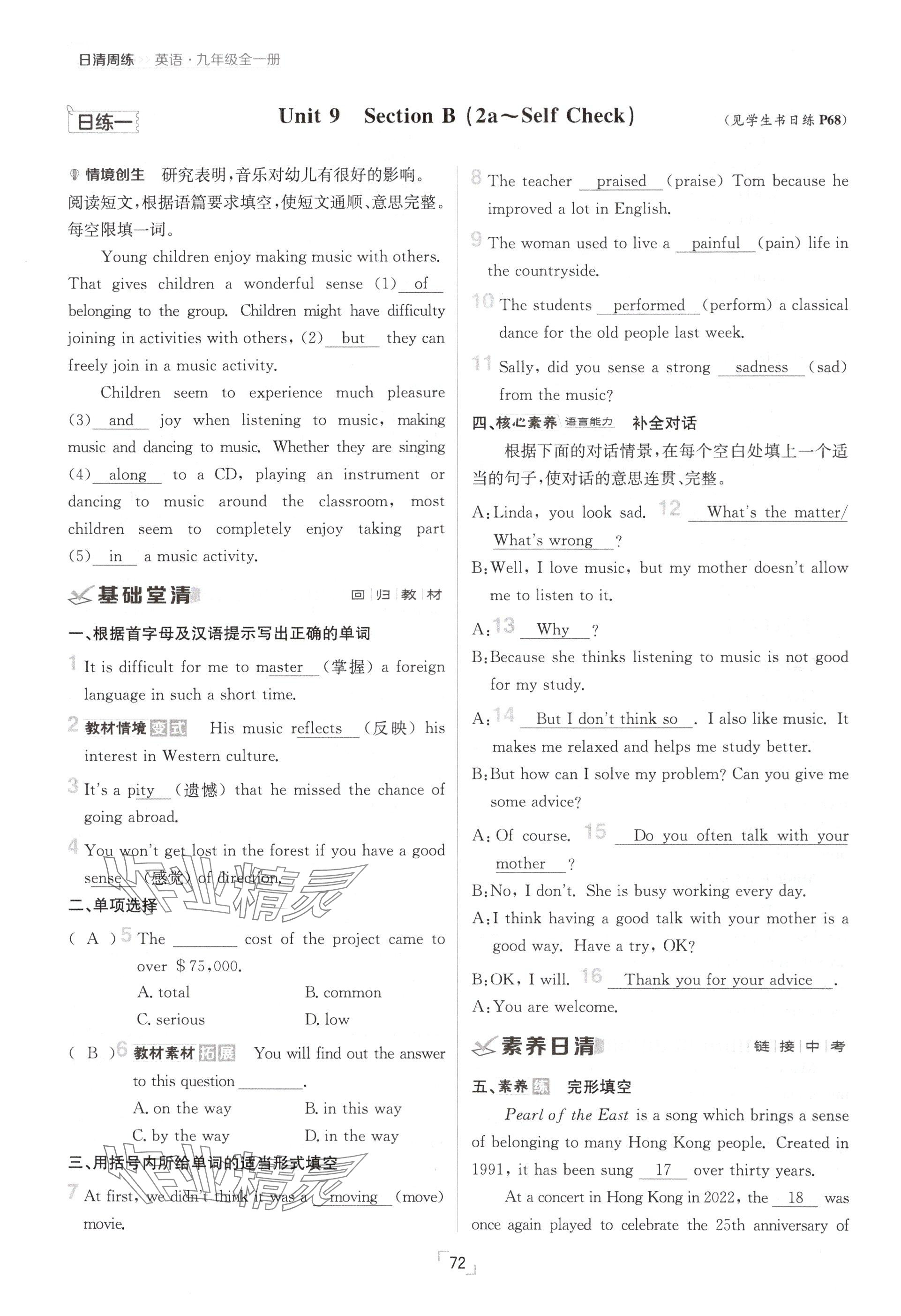 注:目前有些书本章节名称可能整理的还不是很完善,但都是按照顺序排列的,请同学们按照顺序仔细查找。练习册 2024年日清周练九年级英语全一册人教版 答案主要是用来给同学们做完题方便对答案用的,请勿直接抄袭。