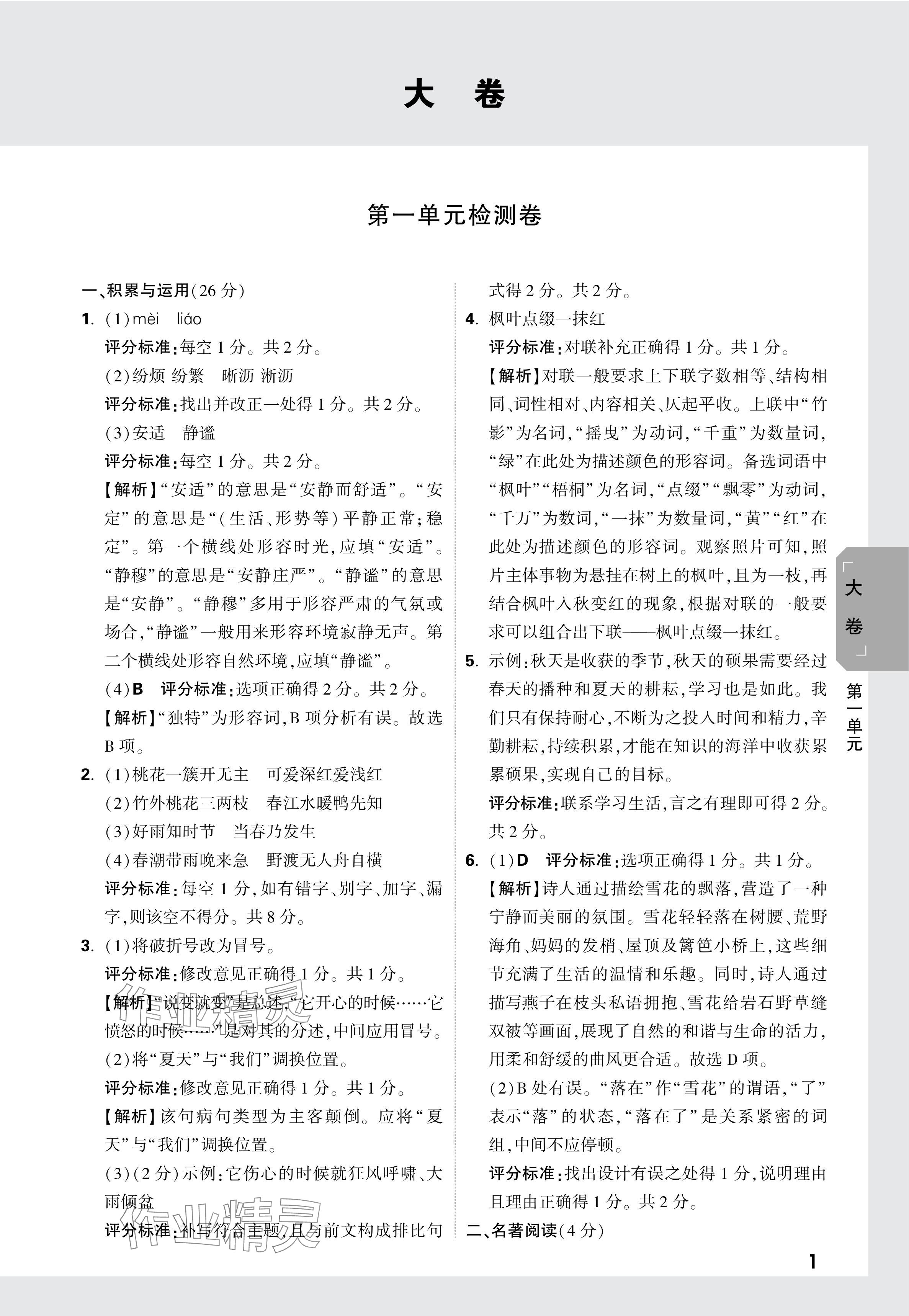 注:目前有些书本章节名称可能整理的还不是很完善,但都是按照顺序排列的,请同学们按照顺序仔细查找。练习册 2024年万唯中考大小卷七年级语文上册 答案主要是用来给同学们做完题方便对答案用的,请勿直接抄袭。