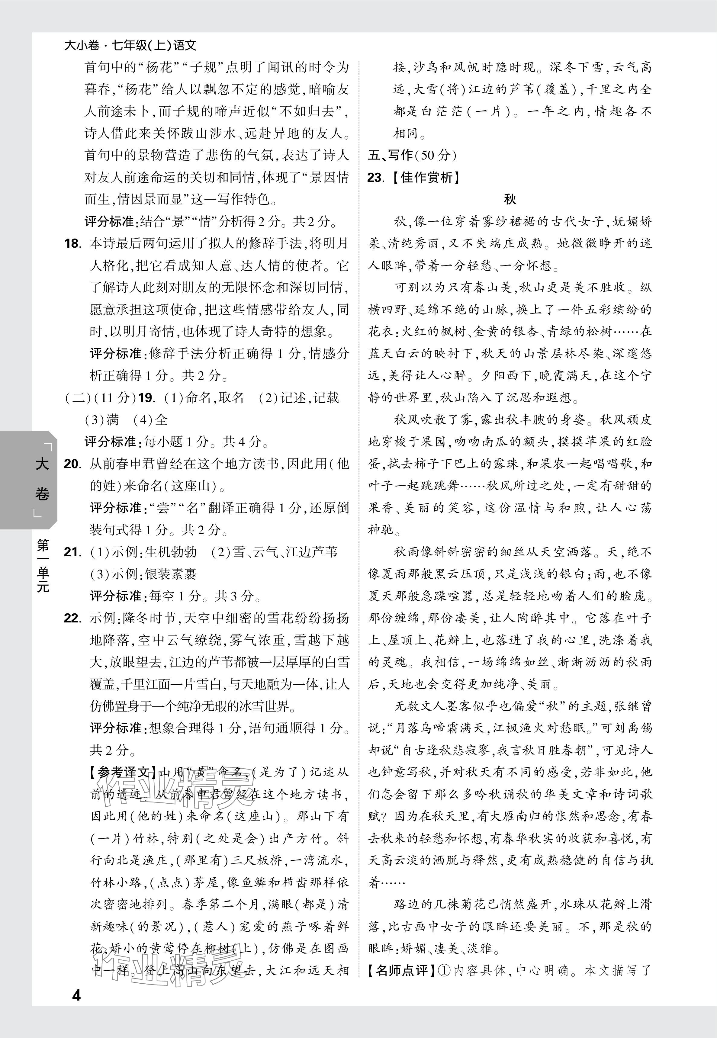 2024年万唯中考大小卷七年级语文上册