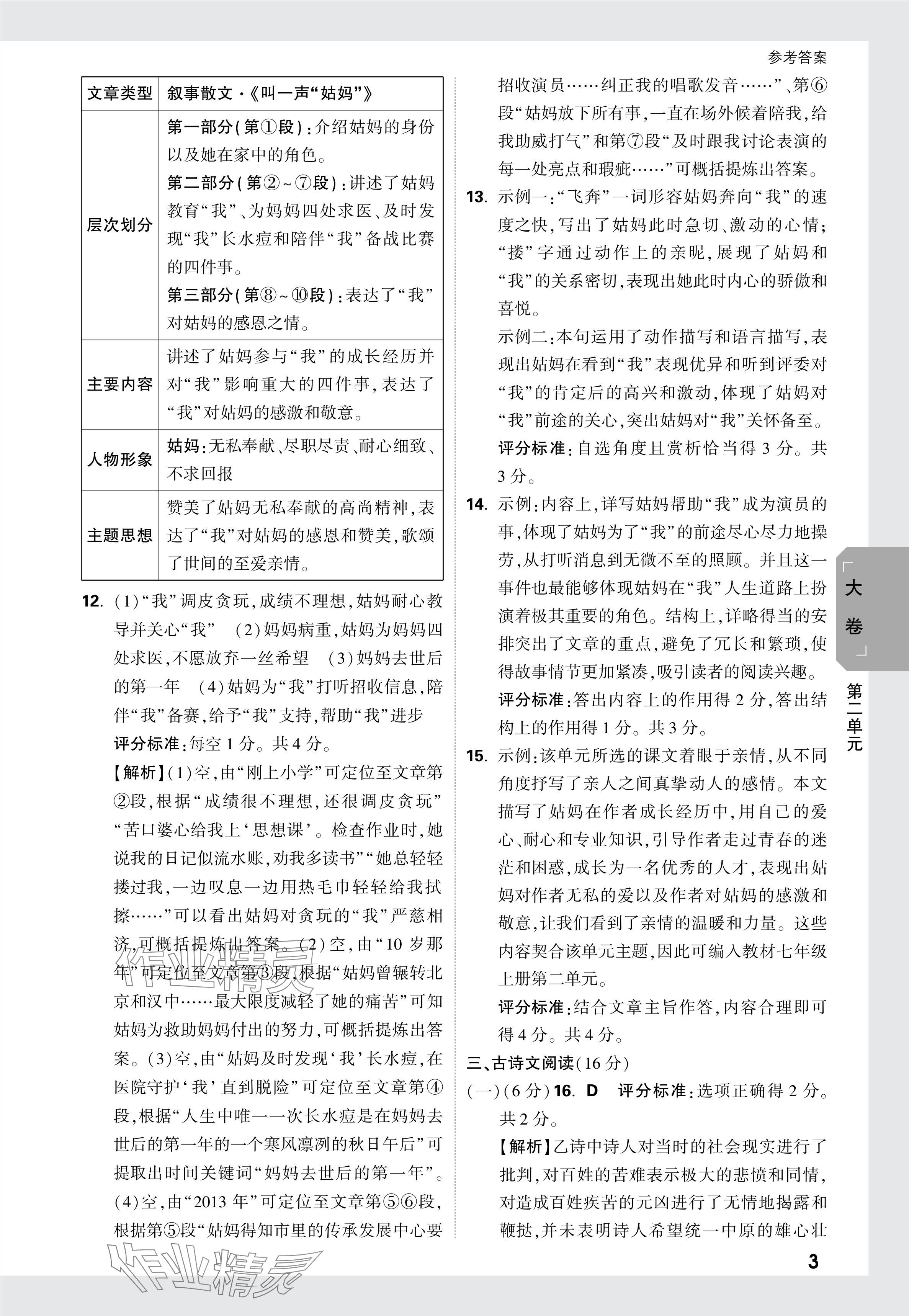 注:目前有些书本章节名称可能整理的还不是很完善,但都是按照顺序排列的,请同学们按照顺序仔细查找。练习册 2024年万唯中考大小卷七年级语文上册 答案主要是用来给同学们做完题方便对答案用的,请勿直接抄袭。