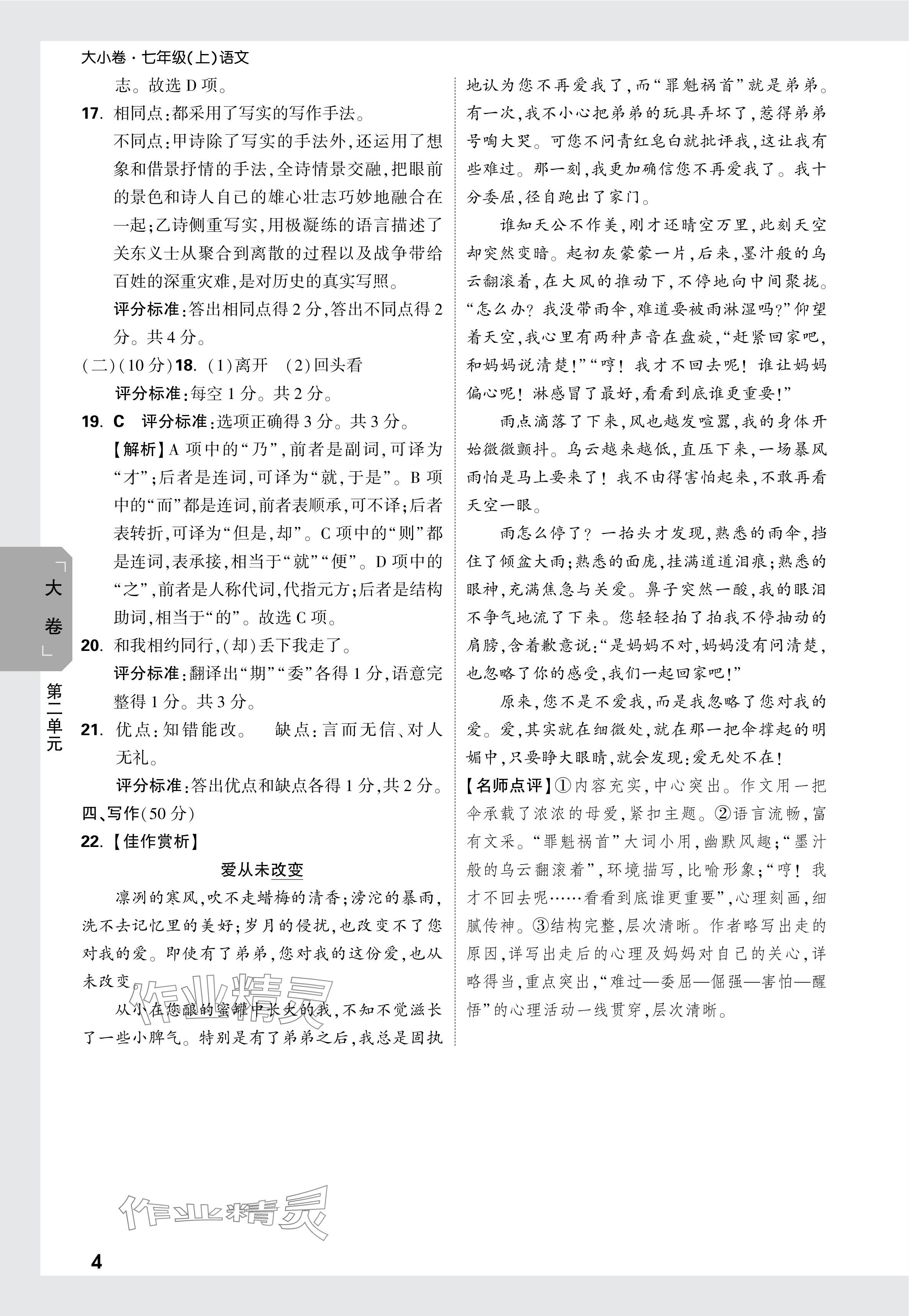 2024年万唯中考大小卷七年级语文上册