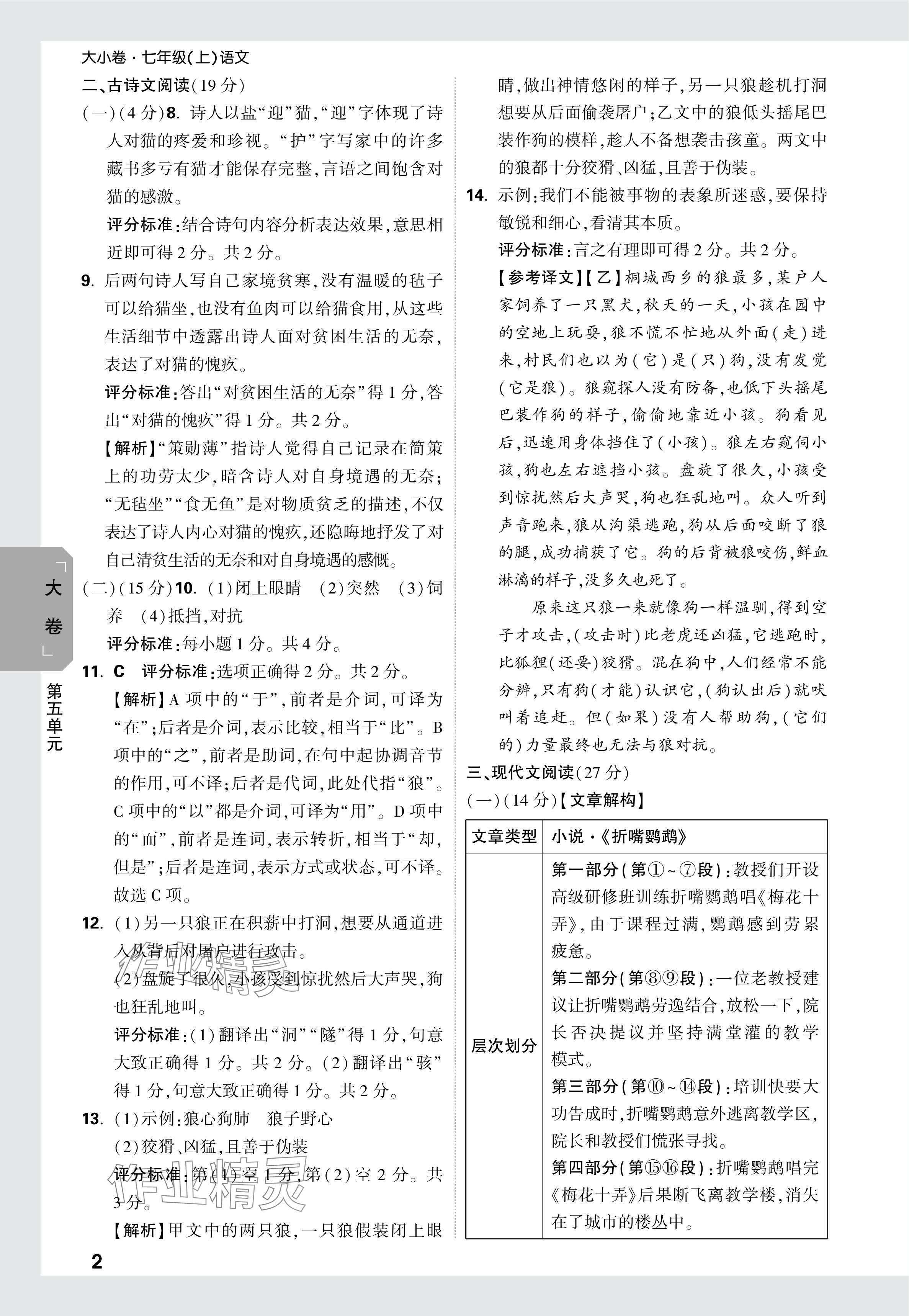 注:目前有些书本章节名称可能整理的还不是很完善,但都是按照顺序排列的,请同学们按照顺序仔细查找。练习册 2024年万唯中考大小卷七年级语文上册 答案主要是用来给同学们做完题方便对答案用的,请勿直接抄袭。
