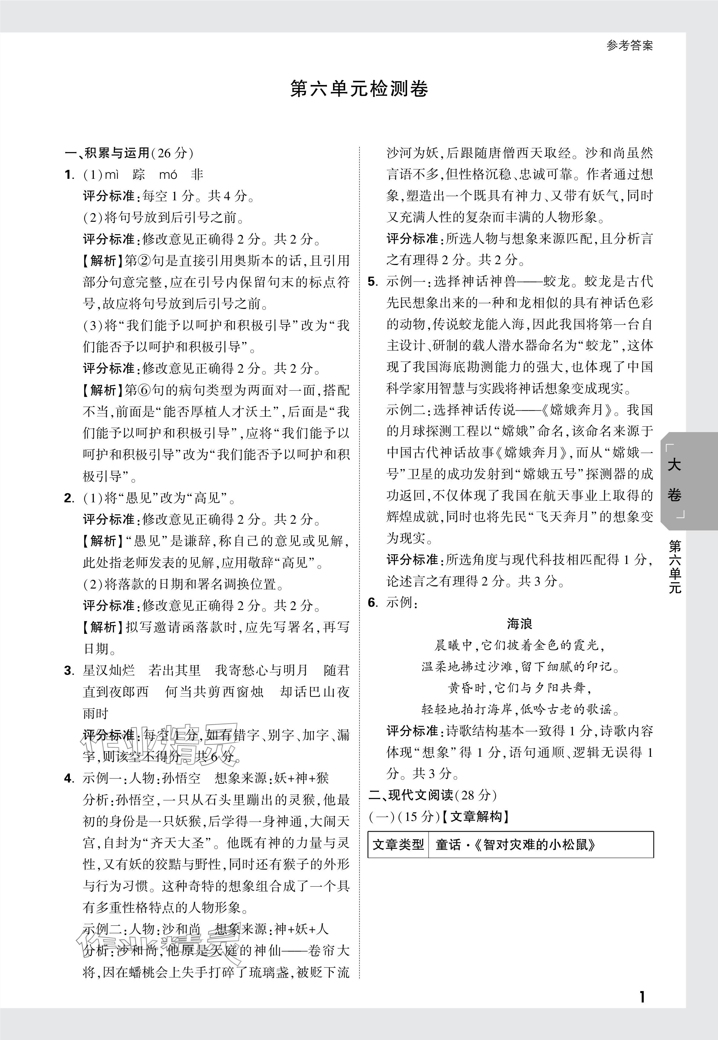 注:目前有些书本章节名称可能整理的还不是很完善,但都是按照顺序排列的,请同学们按照顺序仔细查找。练习册 2024年万唯中考大小卷七年级语文上册 答案主要是用来给同学们做完题方便对答案用的,请勿直接抄袭。