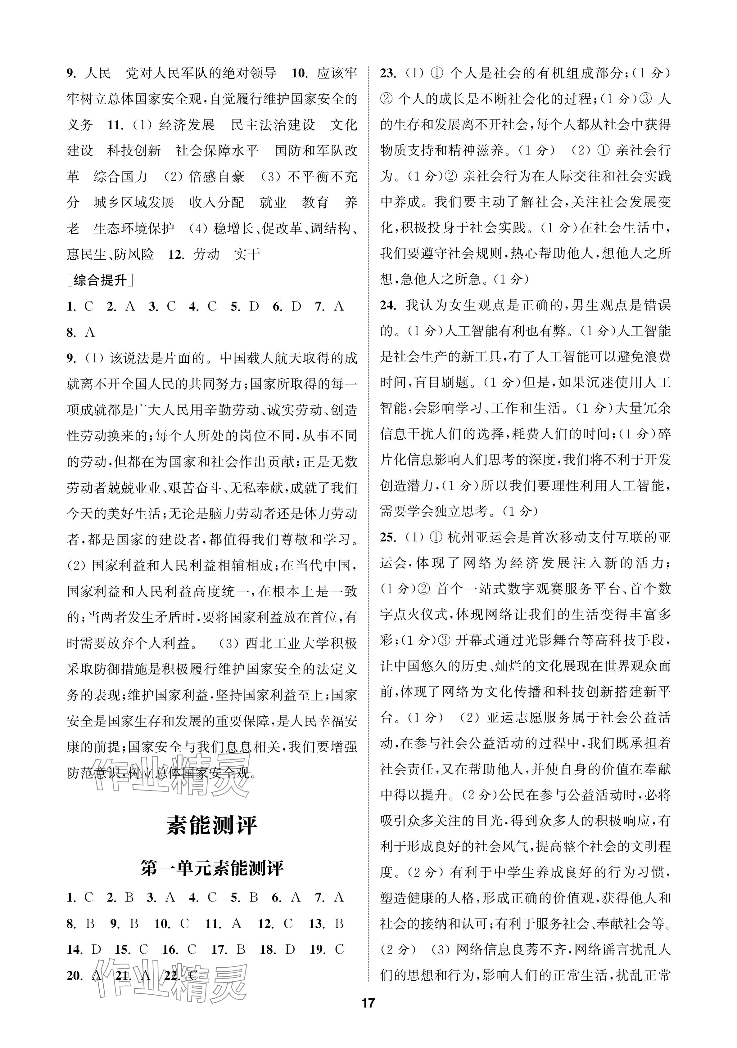 注:目前有些书本章节名称可能整理的还不是很完善,但都是按照顺序排列的,请同学们按照顺序仔细查找。练习册 2024年通成学典课时作业本八年级道德与法治上册人教版苏州专版 答案主要是用来给同学们做完题方便对答案用的,请勿直接抄袭。