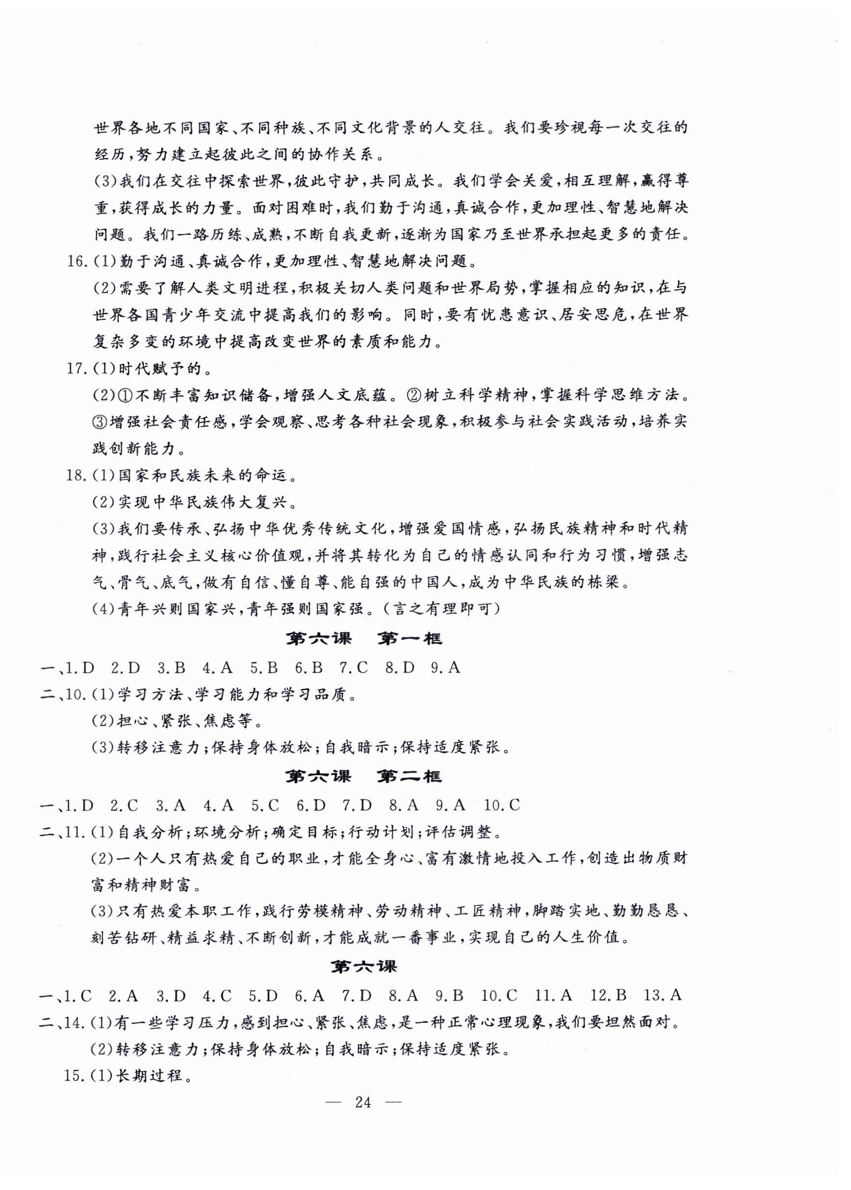 注:目前有些书本章节名称可能整理的还不是很完善,但都是按照顺序排列的,请同学们按照顺序仔细查找。练习册 2024年文曲星跟踪测试卷九年级道德与法治全一册人教版 答案主要是用来给同学们做完题方便对答案用的,请勿直接抄袭。