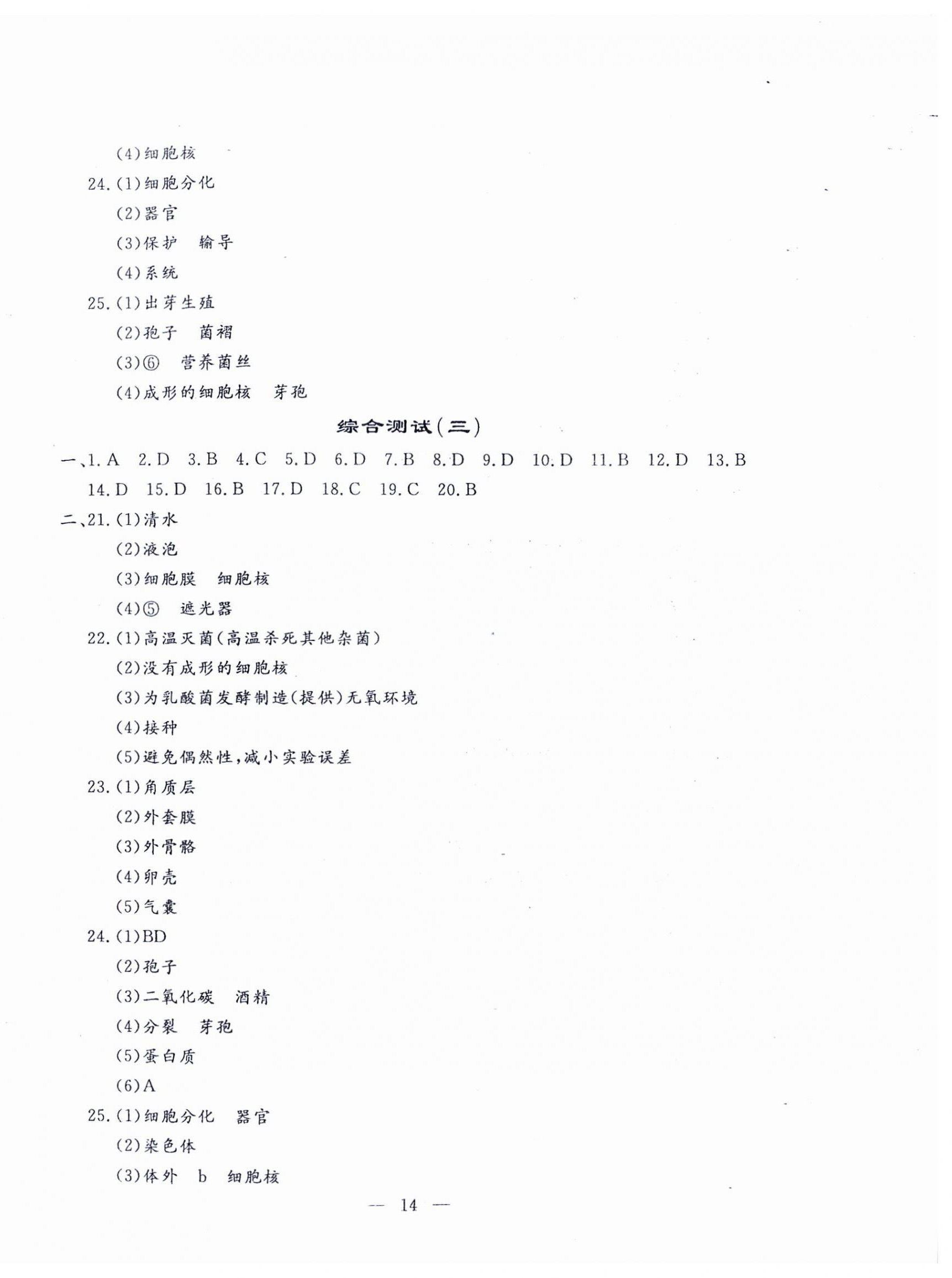 注:目前有些书本章节名称可能整理的还不是很完善,但都是按照顺序排列的,请同学们按照顺序仔细查找。练习册 2024年文曲星跟踪测试卷七年级生物上册人教版 答案主要是用来给同学们做完题方便对答案用的,请勿直接抄袭。