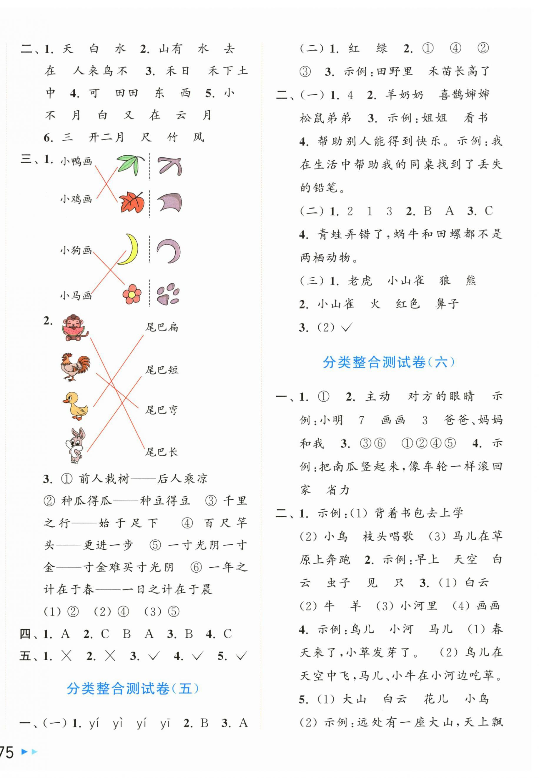 注:目前有些书本章节名称可能整理的还不是很完善,但都是按照顺序排列的,请同学们按照顺序仔细查找。练习册 2024年同步跟踪全程检测一年级语文上册人教版 答案主要是用来给同学们做完题方便对答案用的,请勿直接抄袭。
