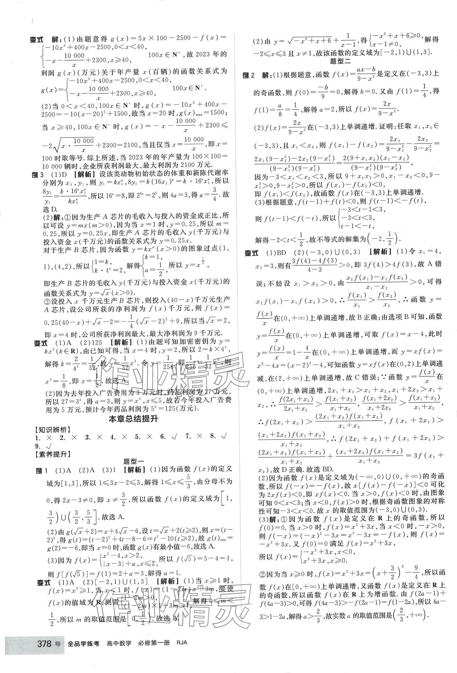 2024年全品学练考高中数学必修第一册人教版