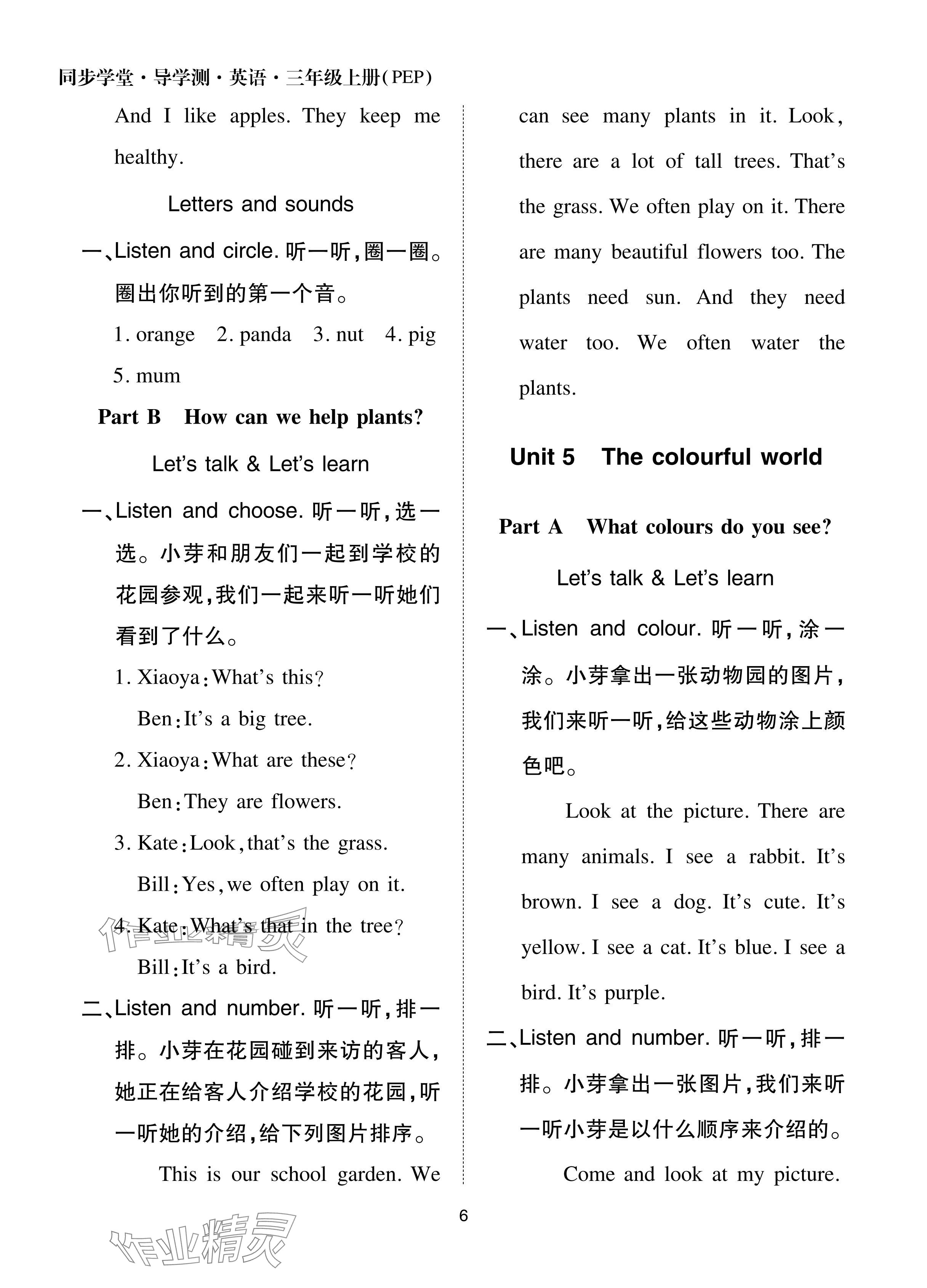 注:目前有些书本章节名称可能整理的还不是很完善,但都是按照顺序排列的,请同学们按照顺序仔细查找。练习册 2024年同步学堂导学测三年级英语上册人教版 答案主要是用来给同学们做完题方便对答案用的,请勿直接抄袭。