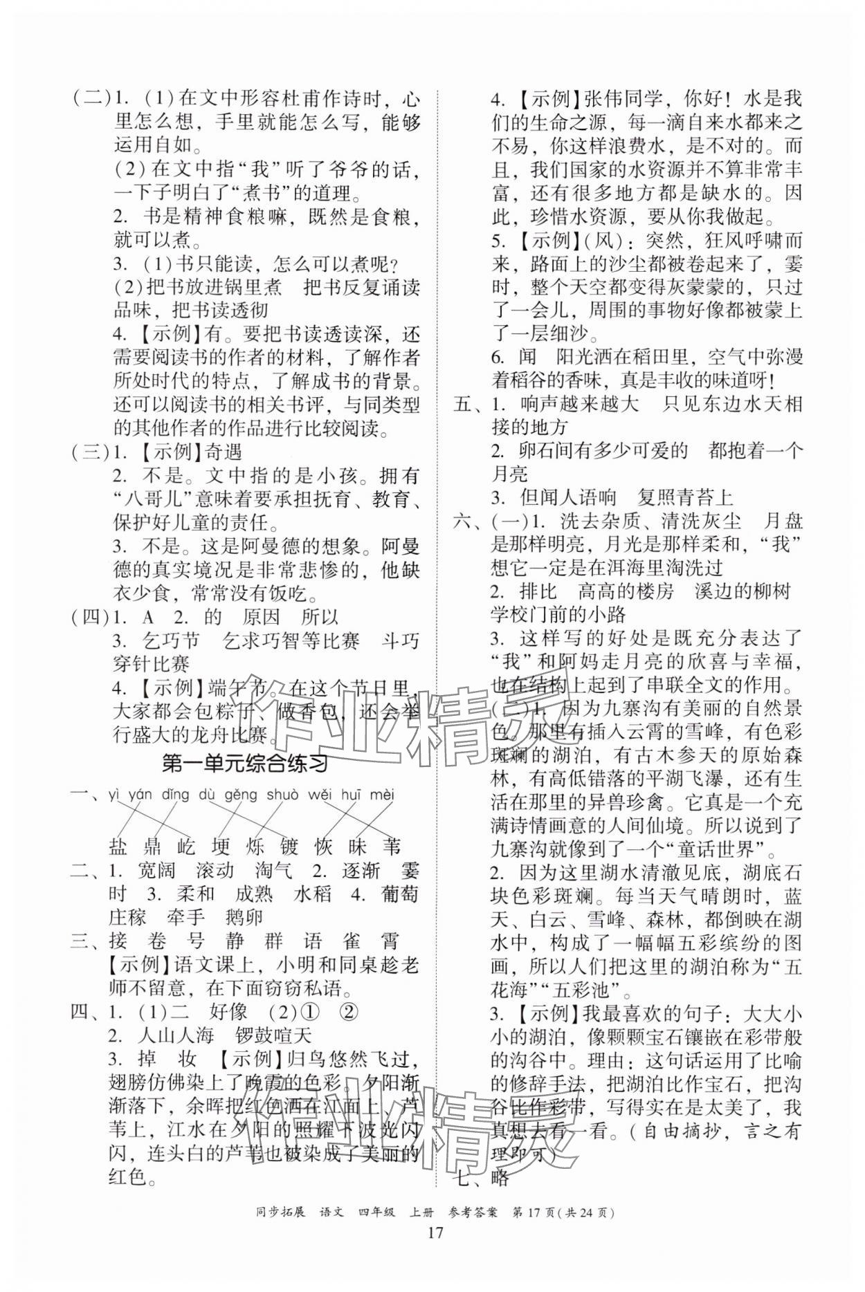 《2024年同步拓展四年级语文上册人教版中山专版》