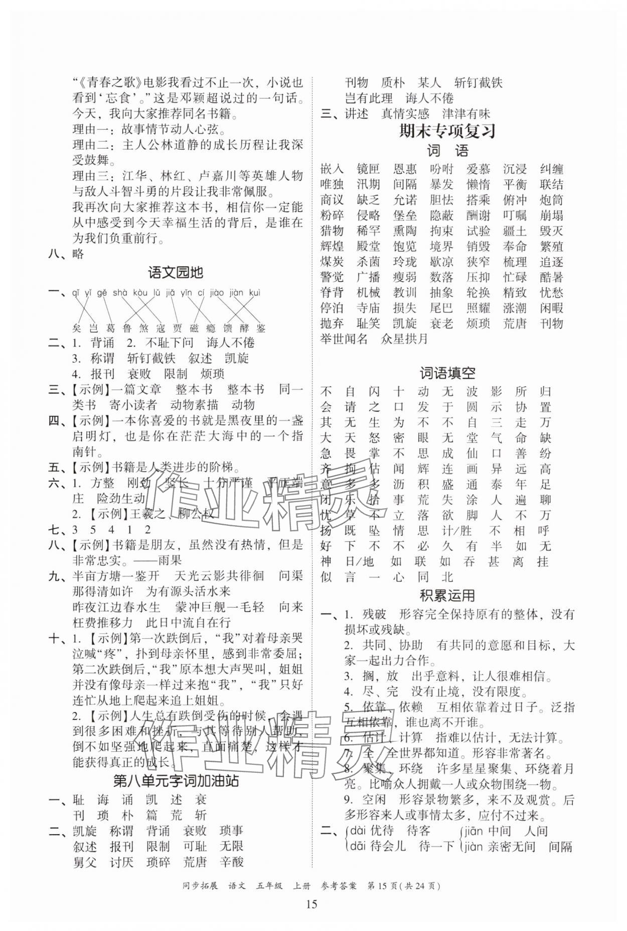 注:目前有些书本章节名称可能整理的还不是很完善,但都是按照顺序排列的,请同学们按照顺序仔细查找。练习册 2024年同步拓展五年级语文上册人教版中山专版 答案主要是用来给同学们做完题方便对答案用的,请勿直接抄袭。