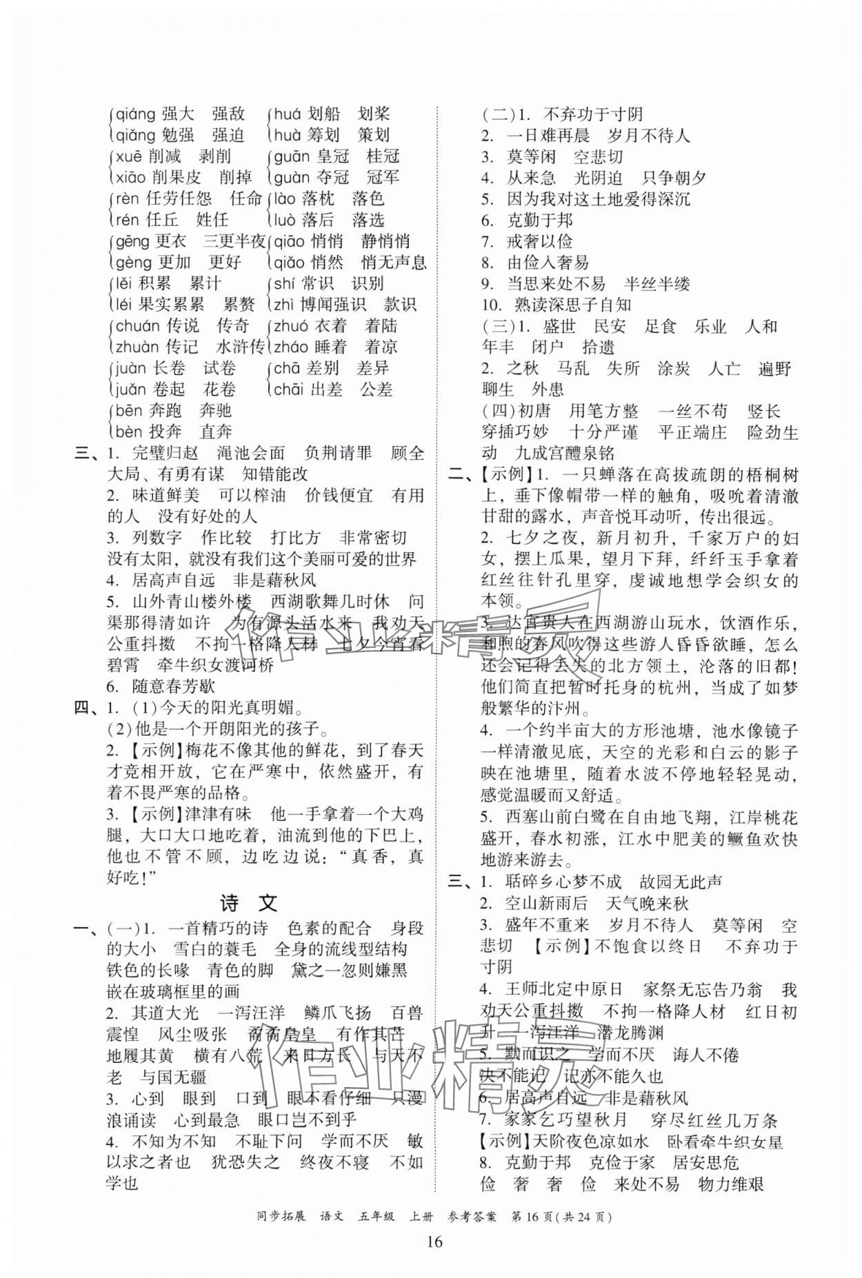注:目前有些书本章节名称可能整理的还不是很完善,但都是按照顺序排列的,请同学们按照顺序仔细查找。练习册 2024年同步拓展五年级语文上册人教版中山专版 答案主要是用来给同学们做完题方便对答案用的,请勿直接抄袭。