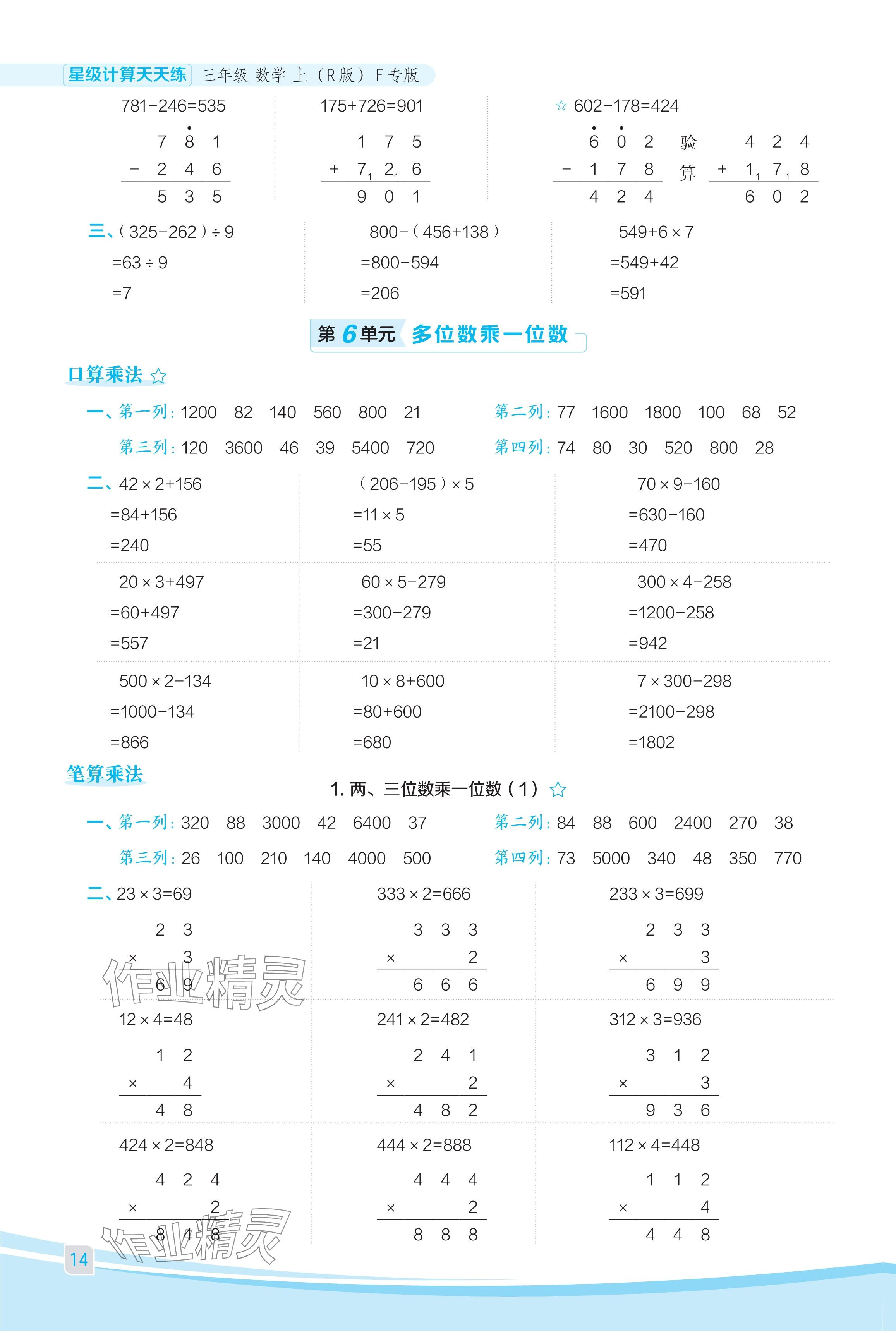 注:目前有些书本章节名称可能整理的还不是很完善,但都是按照顺序排列的,请同学们按照顺序仔细查找。练习册 2024年星级口算天天练三年级数学上册人教版福建专版 答案主要是用来给同学们做完题方便对答案用的,请勿直接抄袭。