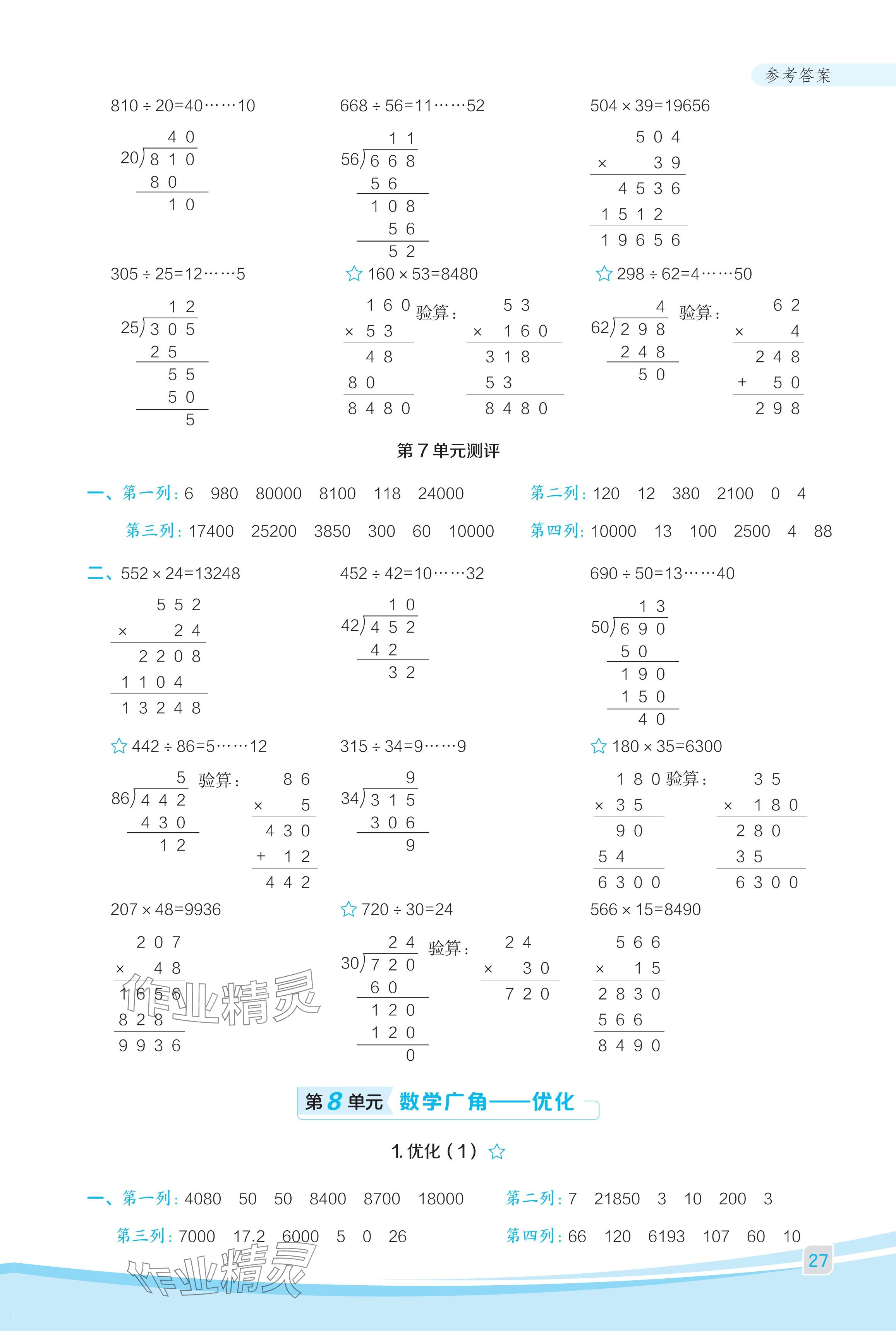 注:目前有些书本章节名称可能整理的还不是很完善,但都是按照顺序排列的,请同学们按照顺序仔细查找。练习册 2024年星级口算天天练四年级数学上册人教版福建专版 答案主要是用来给同学们做完题方便对答案用的,请勿直接抄袭。