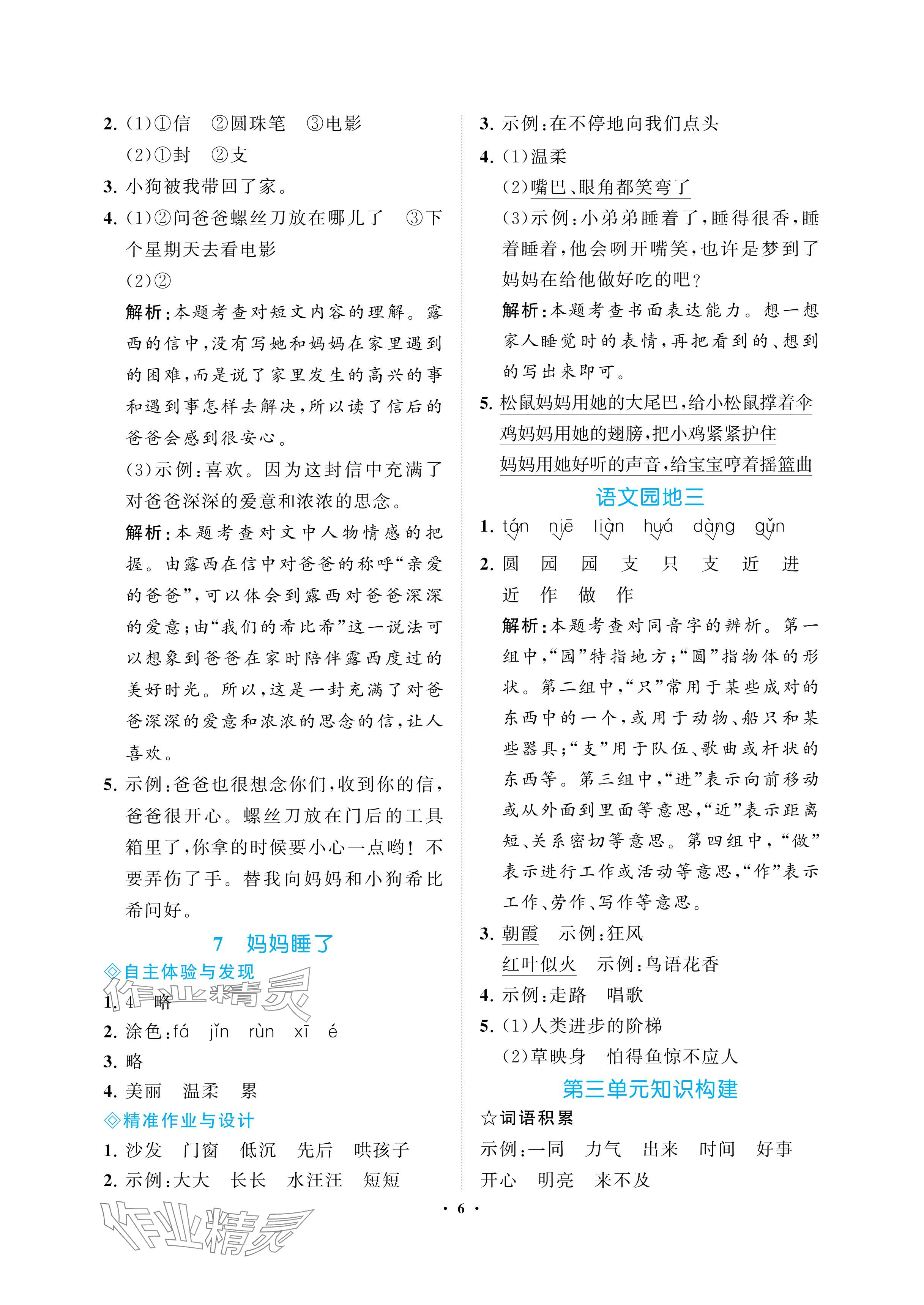 注:目前有些书本章节名称可能整理的还不是很完善,但都是按照顺序排列的,请同学们按照顺序仔细查找。练习册 2024年新课程学习指导海南出版社二年级语文上册人教版 答案主要是用来给同学们做完题方便对答案用的,请勿直接抄袭。