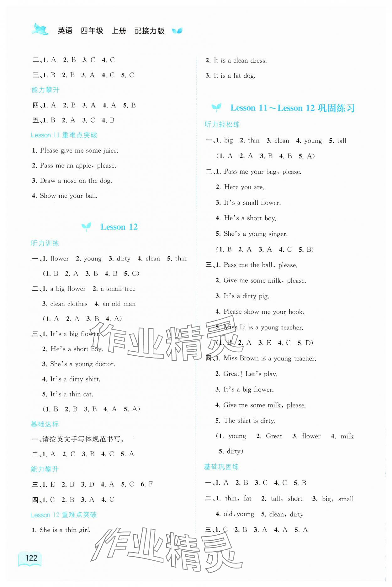 注:目前有些书本章节名称可能整理的还不是很完善,但都是按照顺序排列的,请同学们按照顺序仔细查找。练习册 2024年新课程学习与测评同步学习四年级英语上册接力版 答案主要是用来给同学们做完题方便对答案用的,请勿直接抄袭。