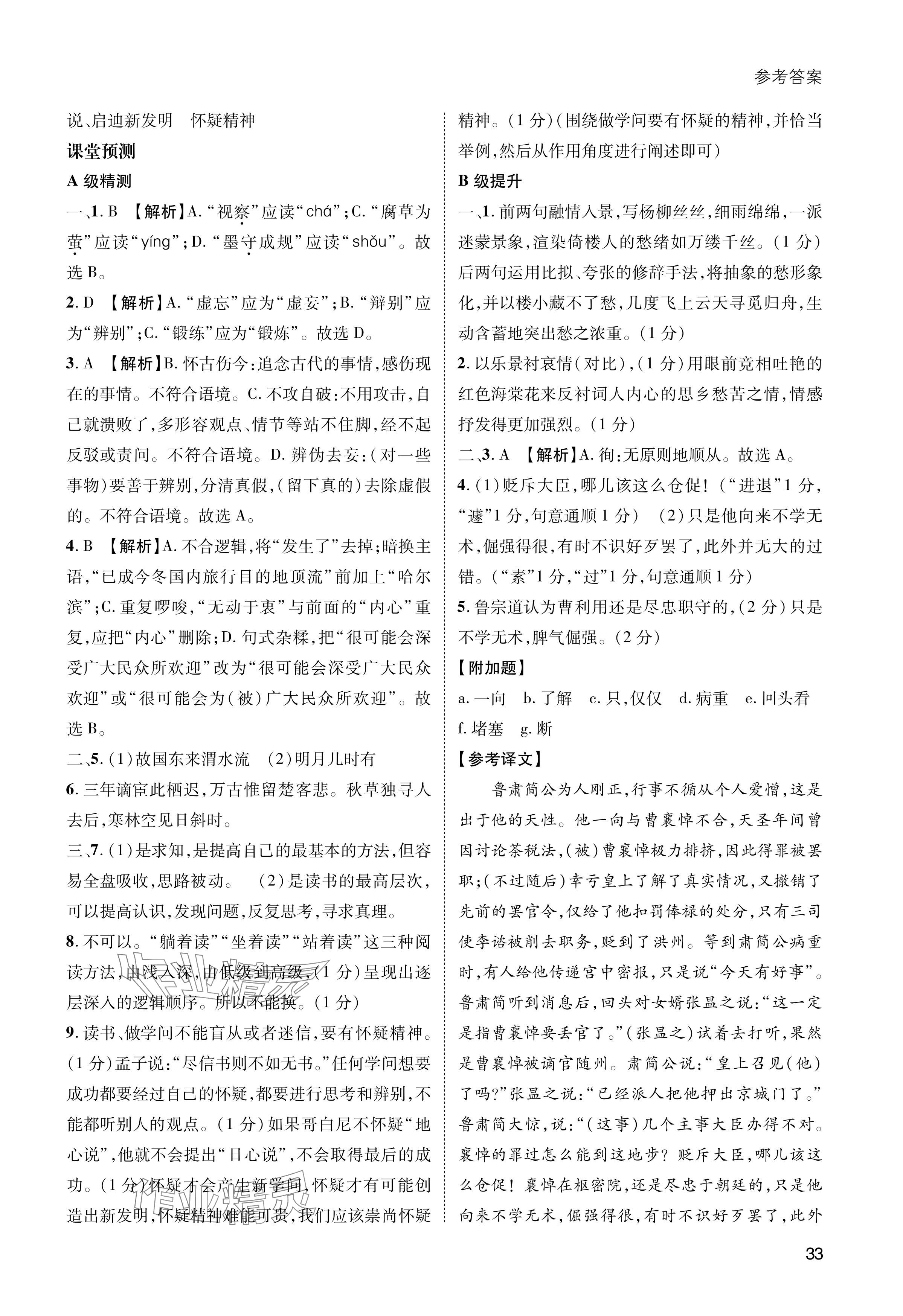 - 参考答案第33页