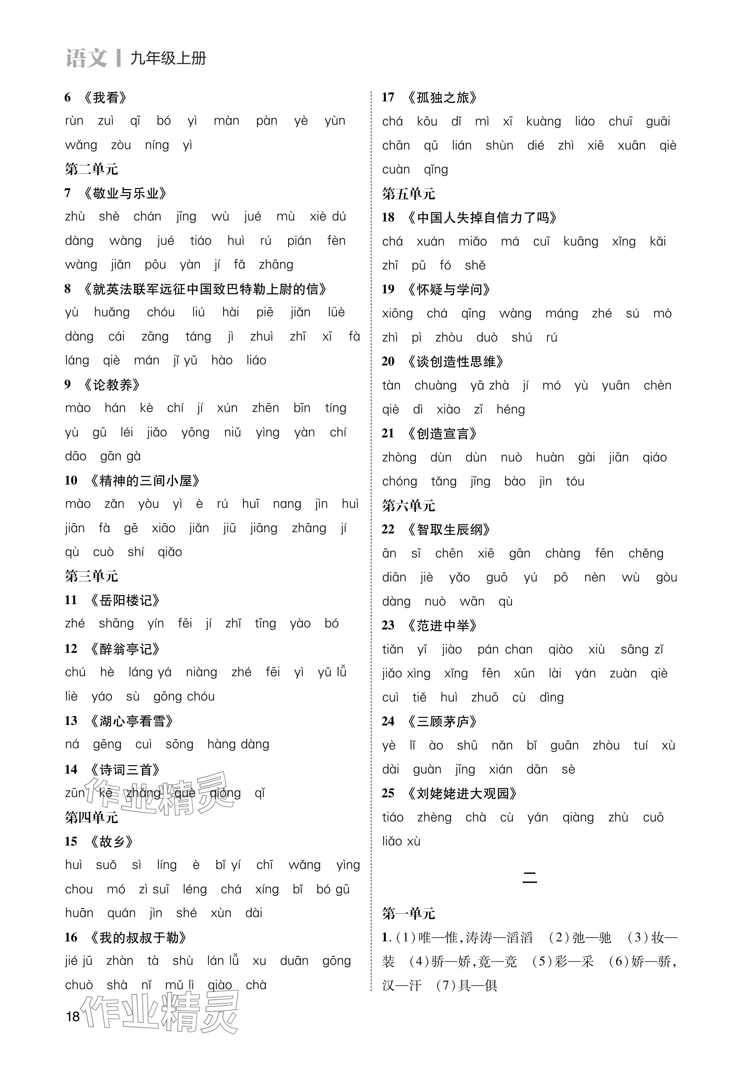 注:目前有些书本章节名称可能整理的还不是很完善,但都是按照顺序排列的,请同学们按照顺序仔细查找。练习册 2024年第一学堂九年级语文上册人教版 答案主要是用来给同学们做完题方便对答案用的,请勿直接抄袭。