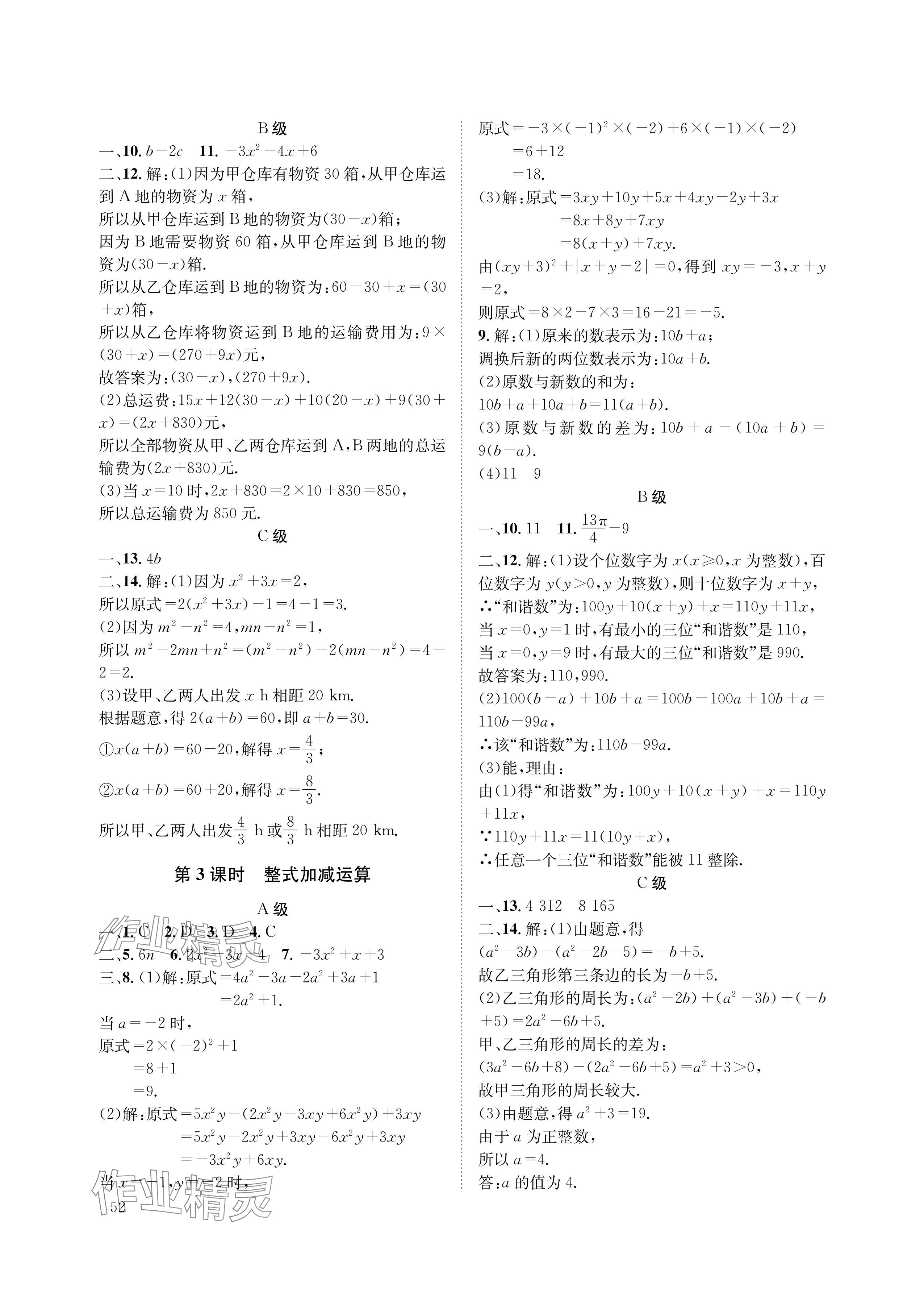 - 参考答案第52页