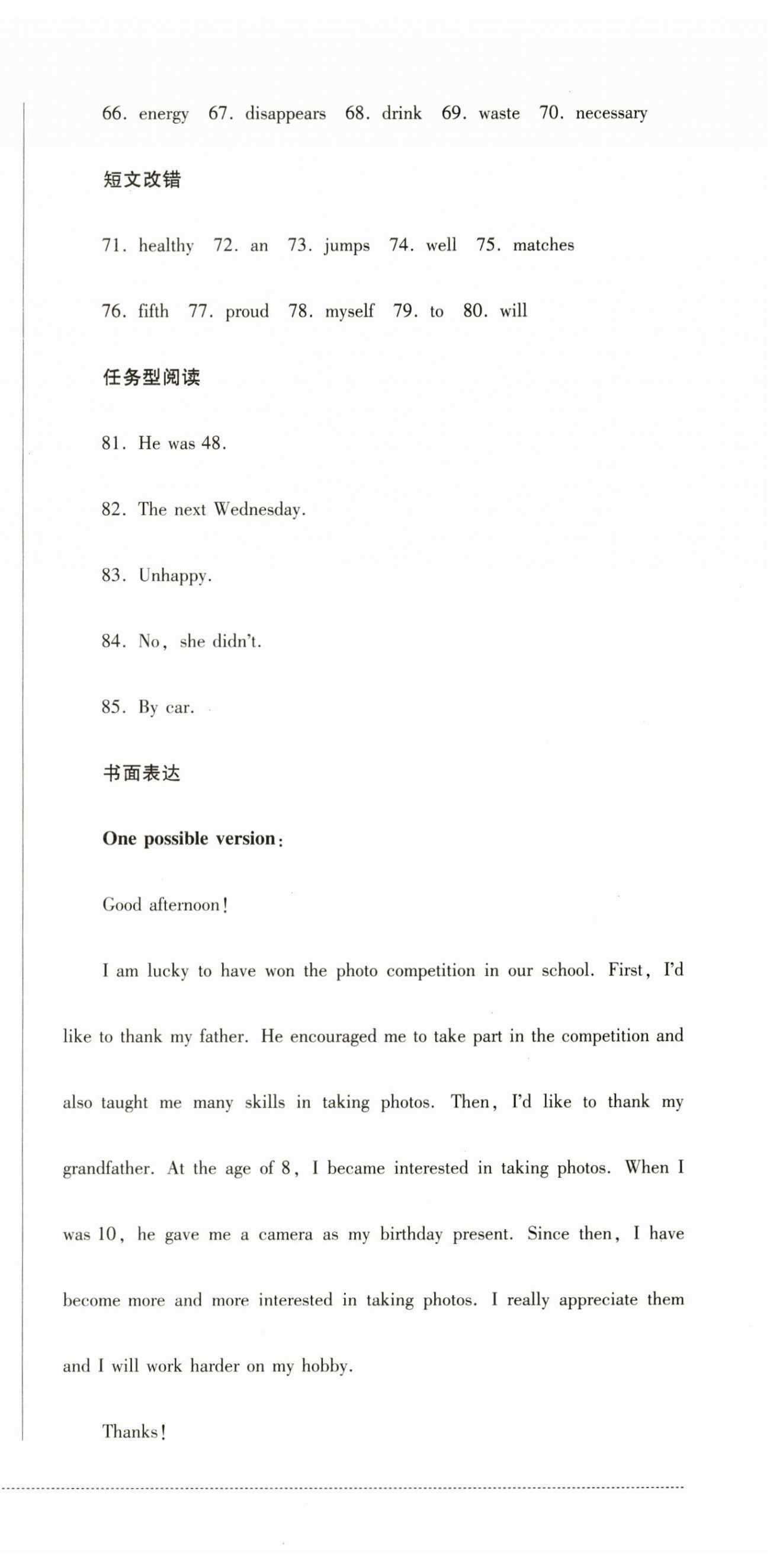 注:目前有些书本章节名称可能整理的还不是很完善,但都是按照顺序排列的,请同学们按照顺序仔细查找。练习册 2024年学情点评四川教育出版社九年级英语上册外研版 答案主要是用来给同学们做完题方便对答案用的,请勿直接抄袭。