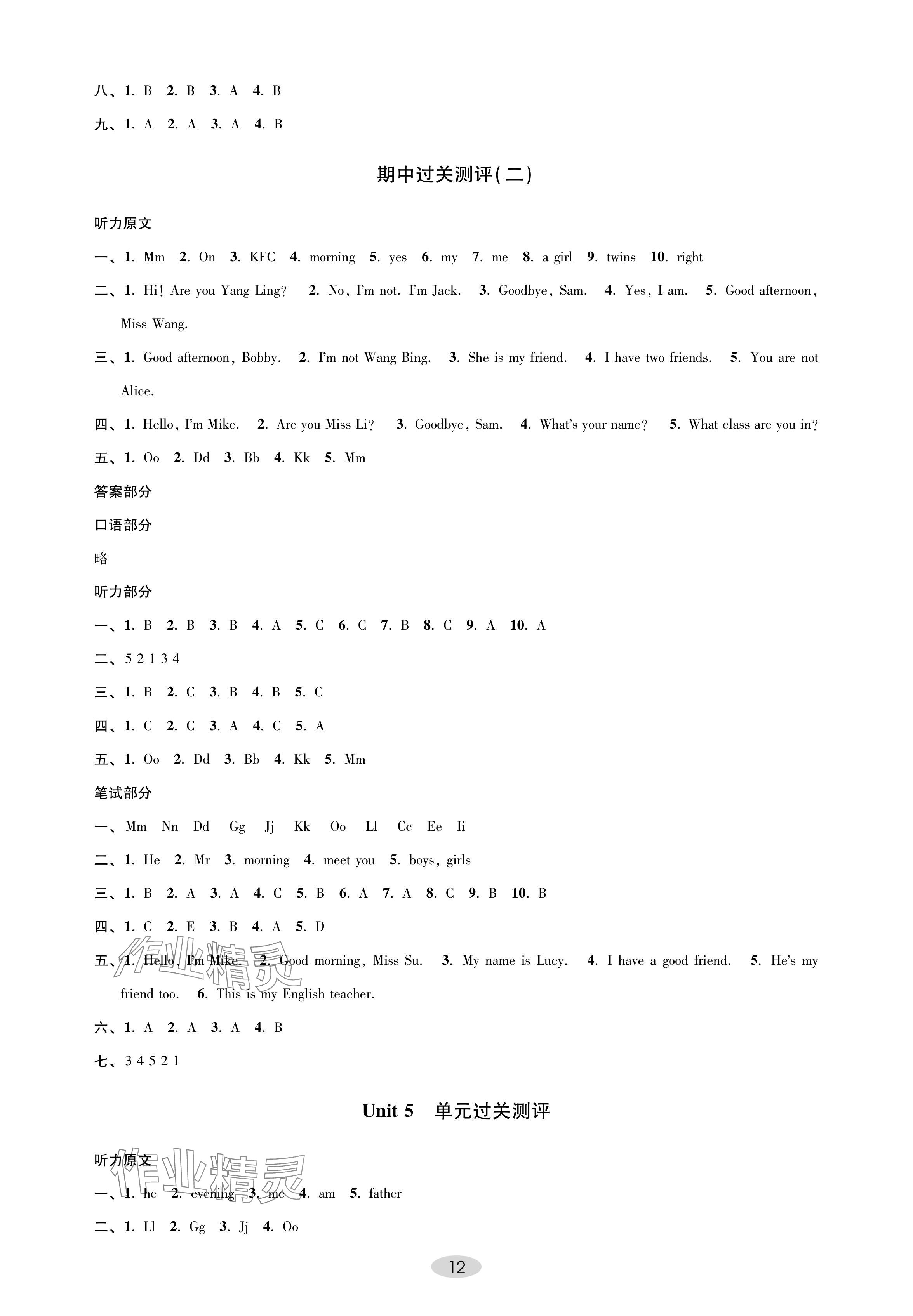 注:目前有些书本章节名称可能整理的还不是很完善,但都是按照顺序排列的,请同学们按照顺序仔细查找。练习册 2024年关键能力进阶三年级英语上册译林版 答案主要是用来给同学们做完题方便对答案用的,请勿直接抄袭。