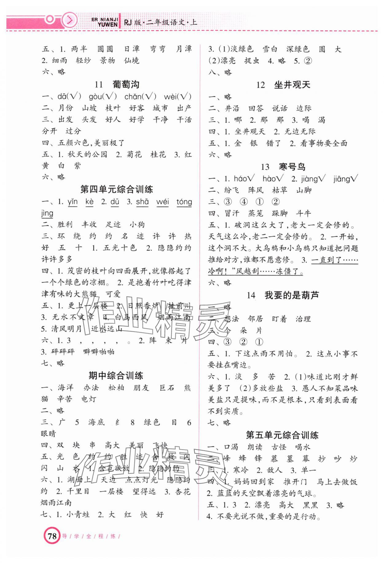 注:目前有些书本章节名称可能整理的还不是很完善,但都是按照顺序排列的,请同学们按照顺序仔细查找。练习册 2024年导学全程练创优训练二年级语文上册人教版 答案主要是用来给同学们做完题方便对答案用的,请勿直接抄袭。
