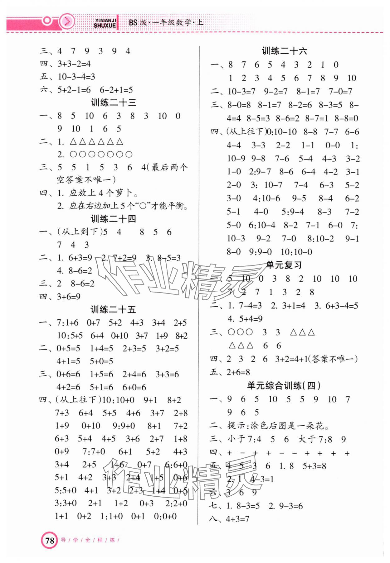 注:目前有些书本章节名称可能整理的还不是很完善,但都是按照顺序排列的,请同学们按照顺序仔细查找。练习册 2024年导学全程练创优训练一年级数学上册北师大版 答案主要是用来给同学们做完题方便对答案用的,请勿直接抄袭。