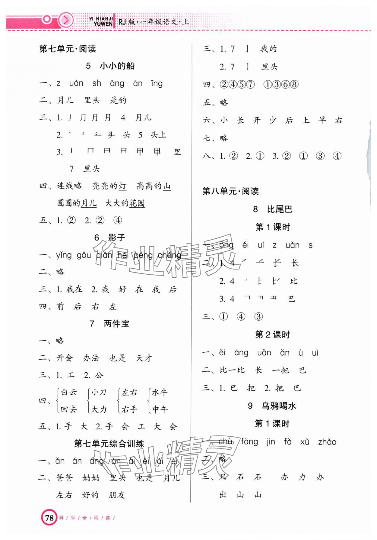注:目前有些书本章节名称可能整理的还不是很完善,但都是按照顺序排列的,请同学们按照顺序仔细查找。练习册 2024年导学全程练创优训练一年级语文上册人教版 答案主要是用来给同学们做完题方便对答案用的,请勿直接抄袭。