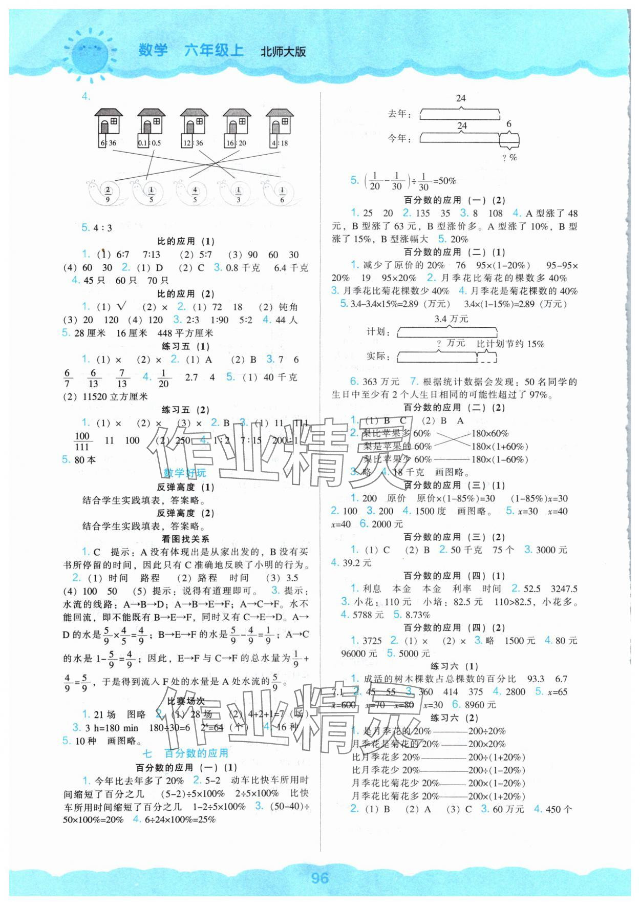 注:目前有些书本章节名称可能整理的还不是很完善,但都是按照顺序排列的,请同学们按照顺序仔细查找。练习册 2024年新课程能力培养六年级数学上册北师大版 答案主要是用来给同学们做完题方便对答案用的,请勿直接抄袭。
