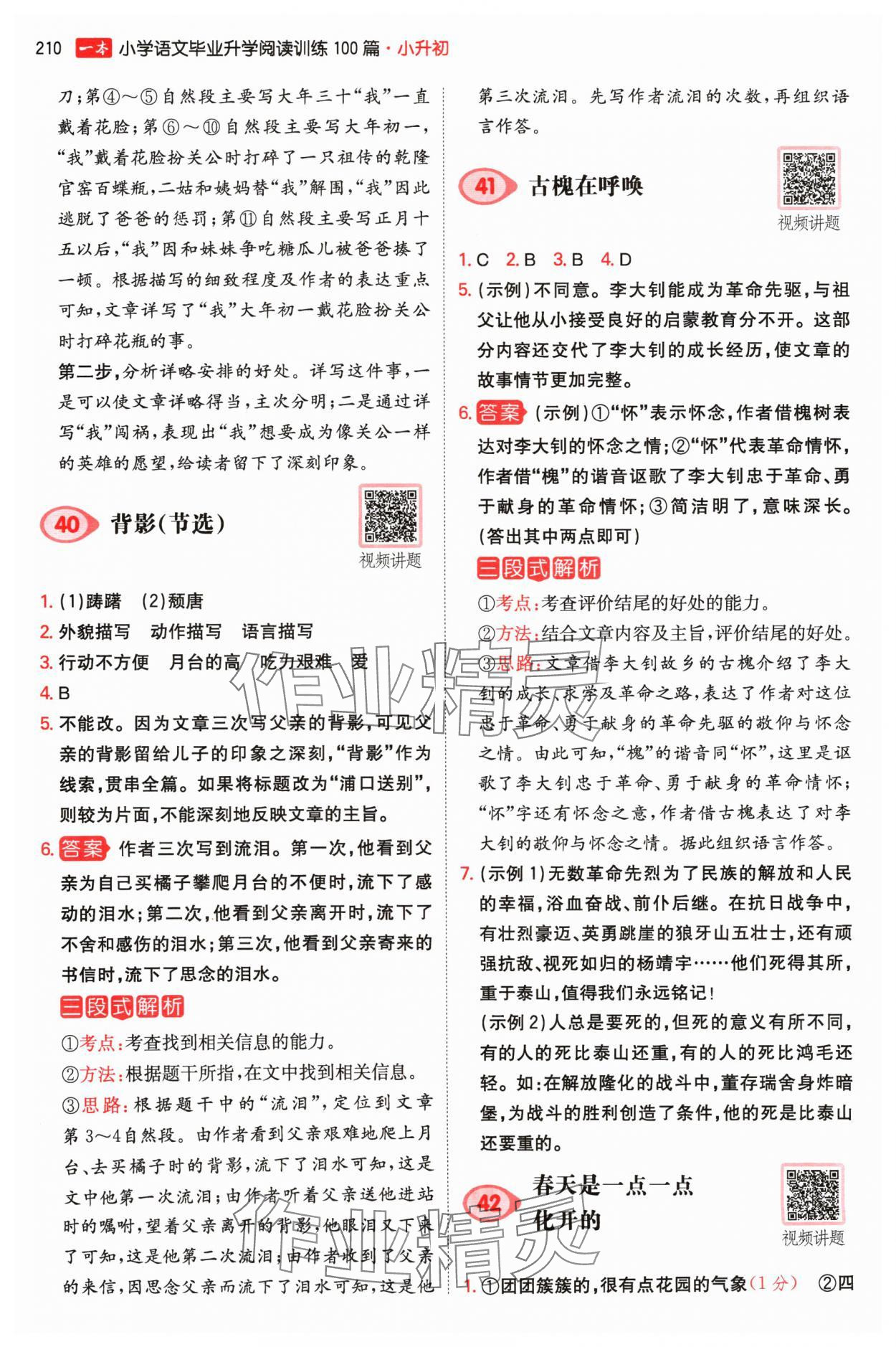 注:目前有些书本章节名称可能整理的还不是很完善,但都是按照顺序排列的,请同学们按照顺序仔细查找。练习册 2024年一本小升初小学语文毕业升学阅读训练100篇 答案主要是用来给同学们做完题方便对答案用的,请勿直接抄袭。